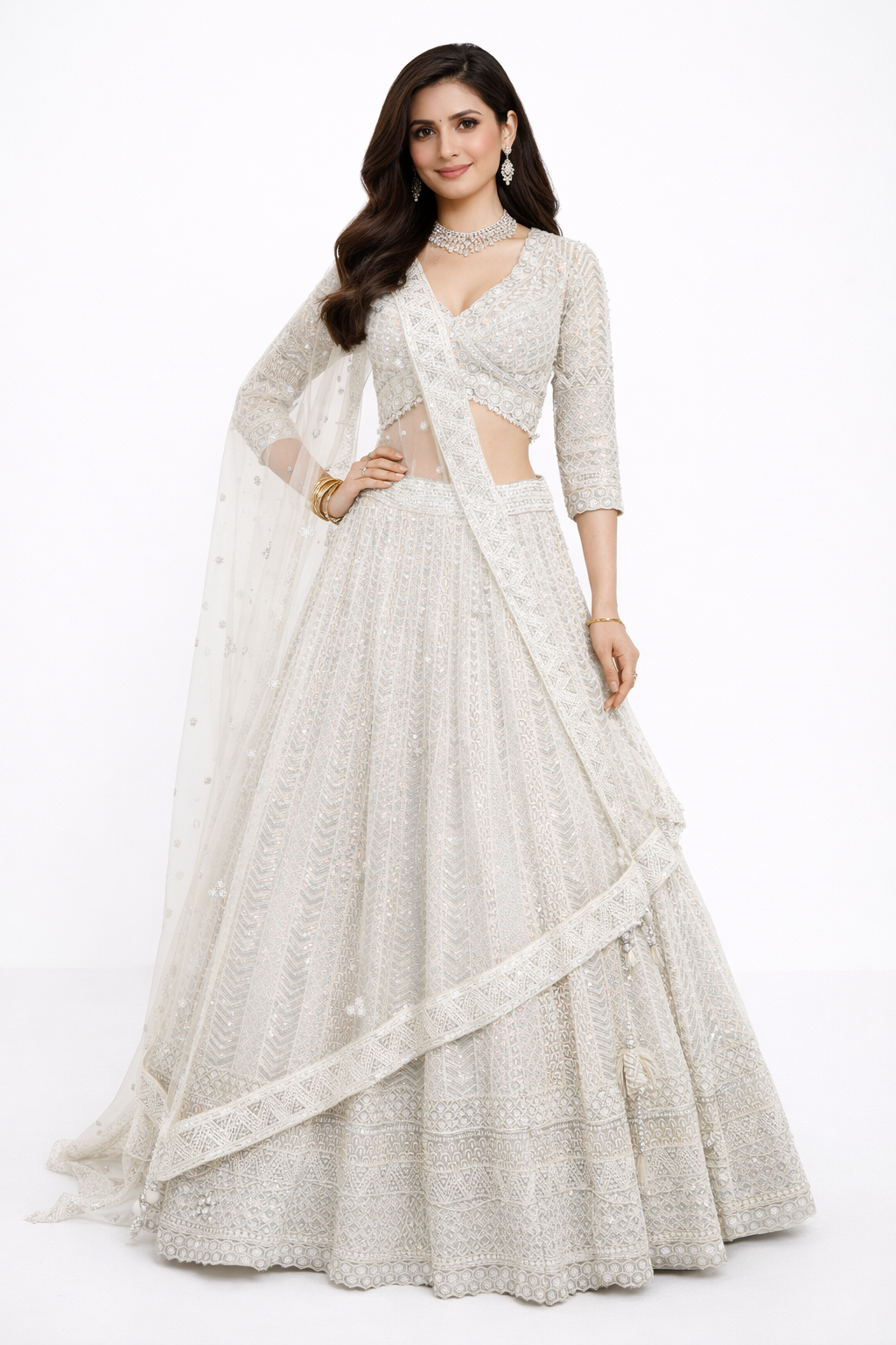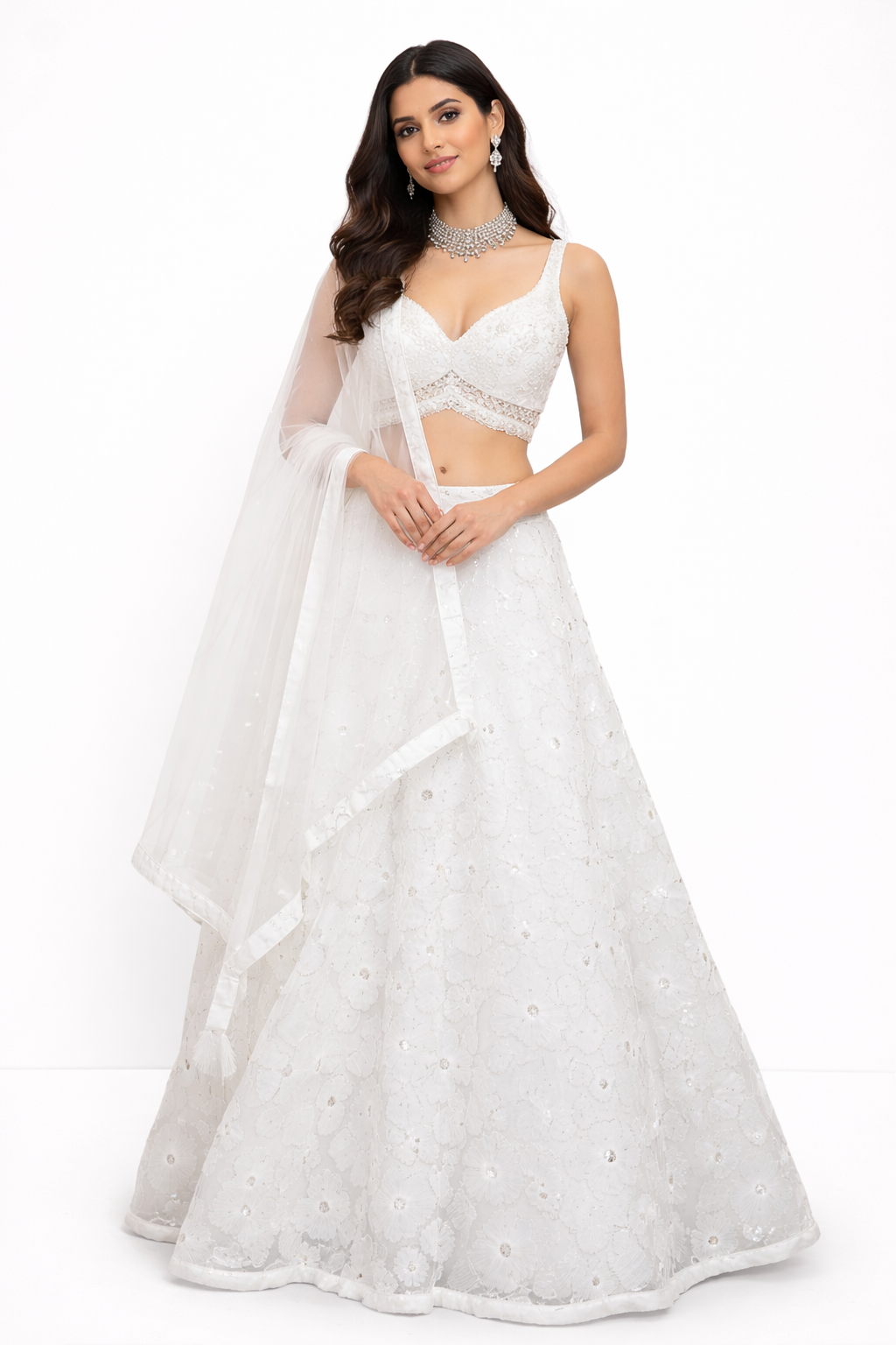 WHITE LEHENGA CHOLI