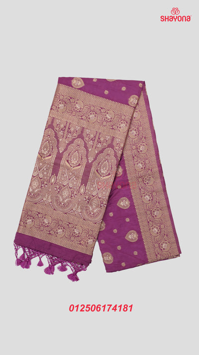 Product Description Elevate your festive wardrobe with this Dark Purple Weaved Artificial Powerloom Silk Thread...
