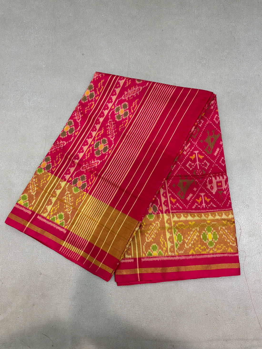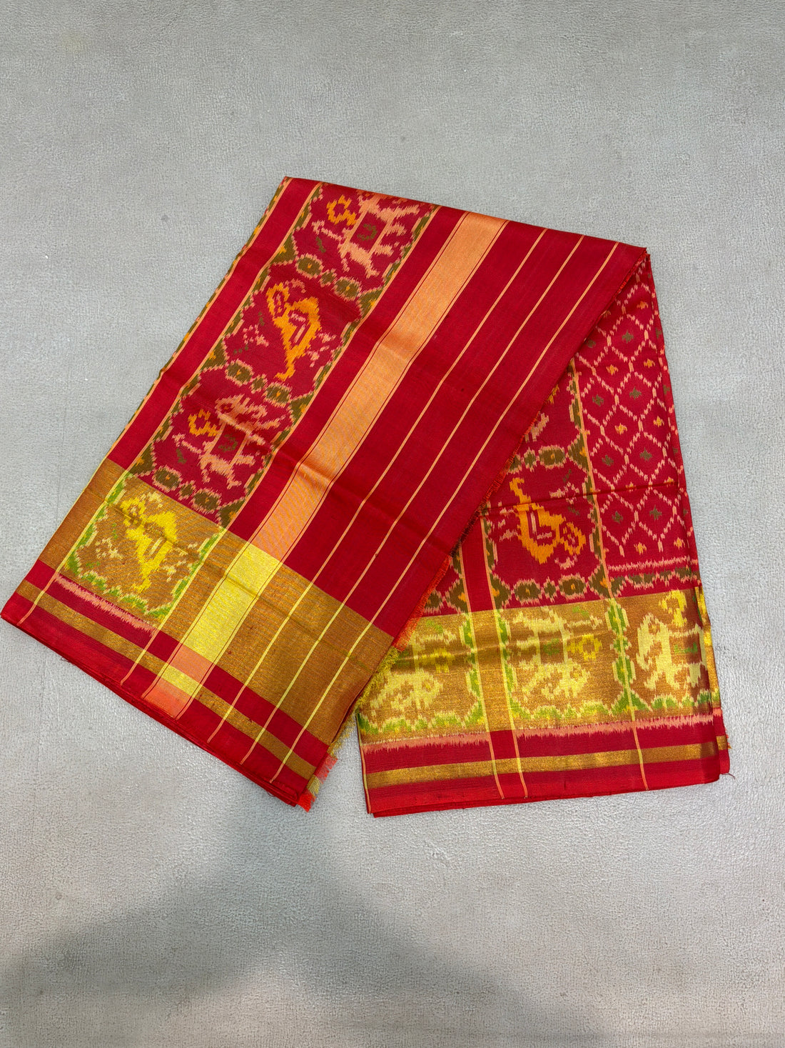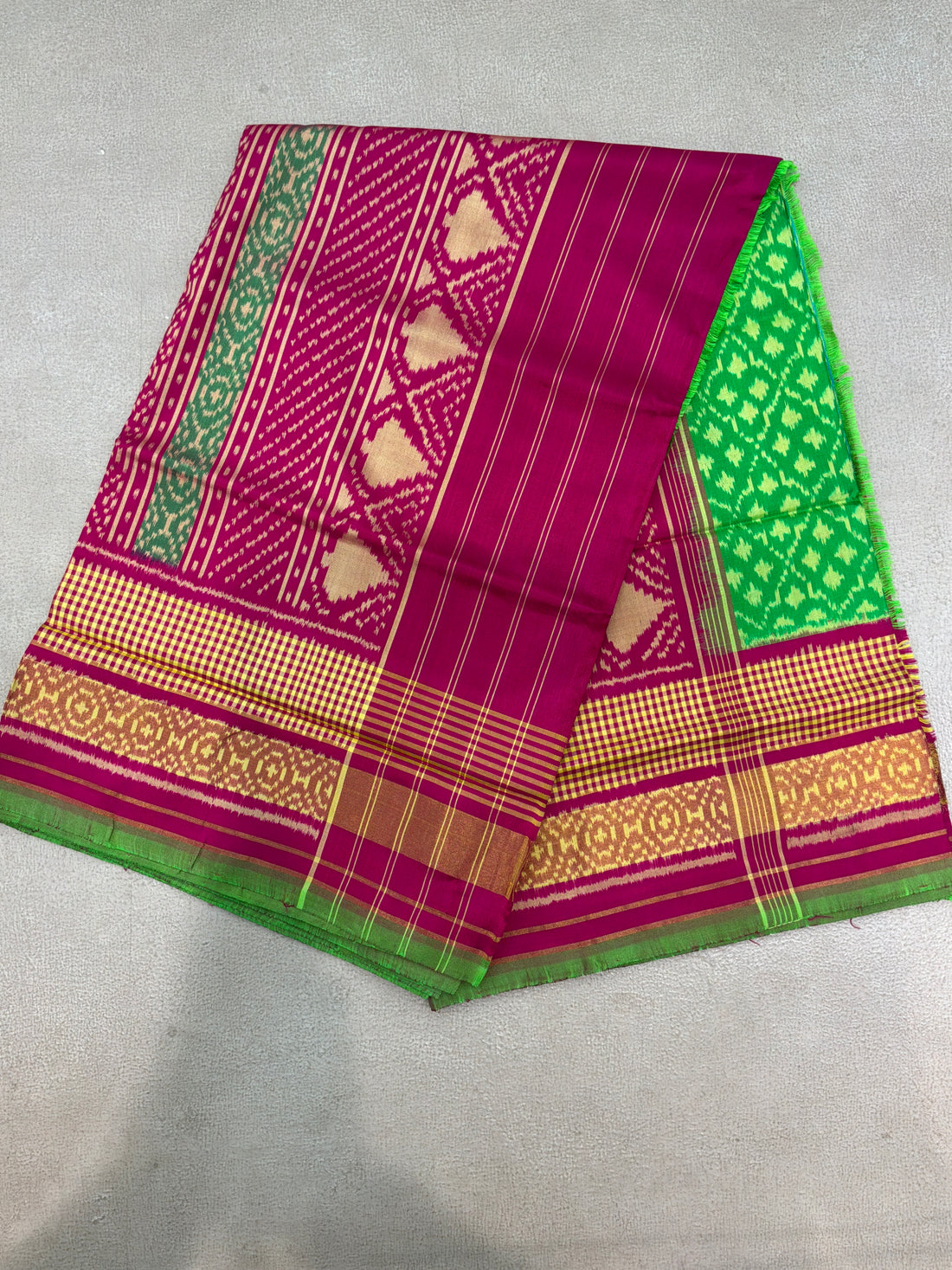 Product Caption A timeless heritage weave that celebrates Gujarat’s royal artistry. This Pure Rajkoti Patan...