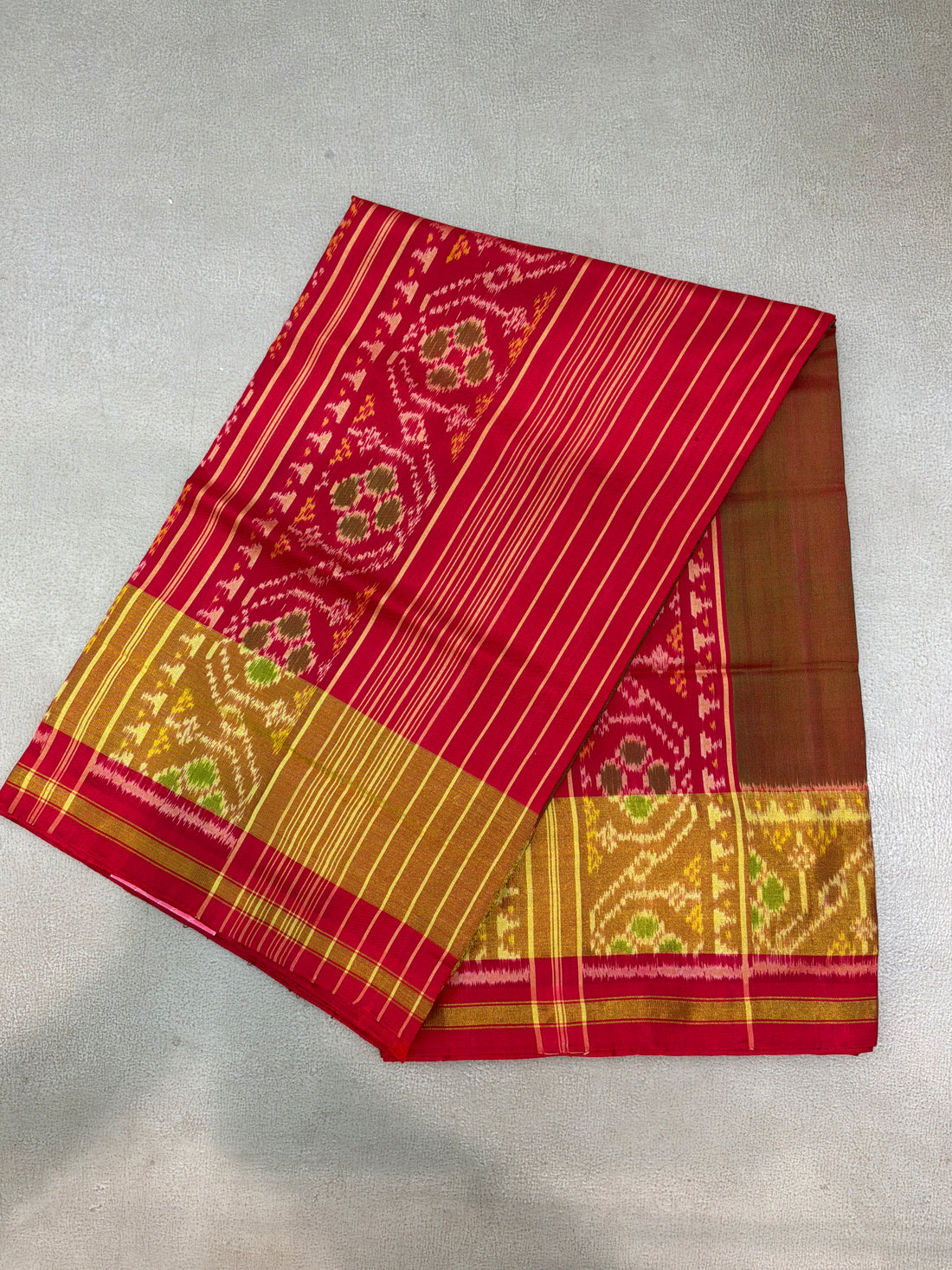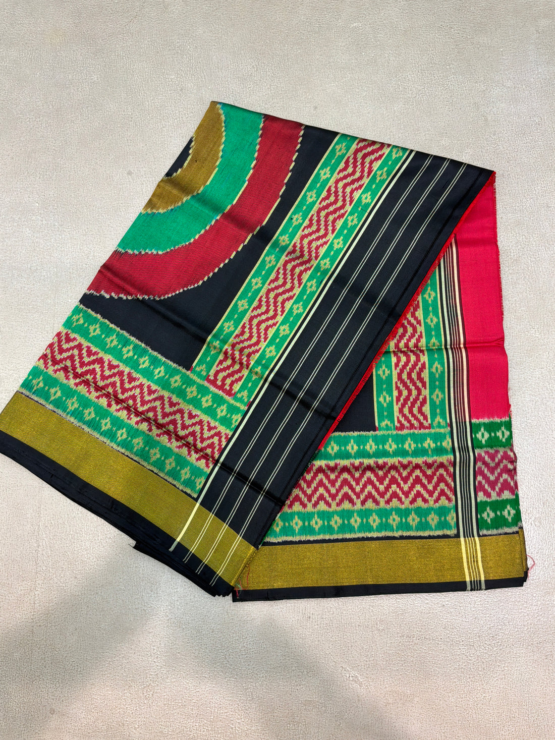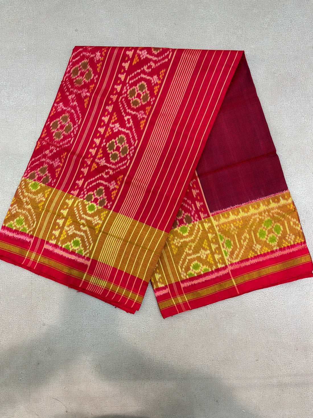 Product Caption A timeless heritage weave that celebrates Gujarat’s royal artistry. This Pure Rajkoti Patan...