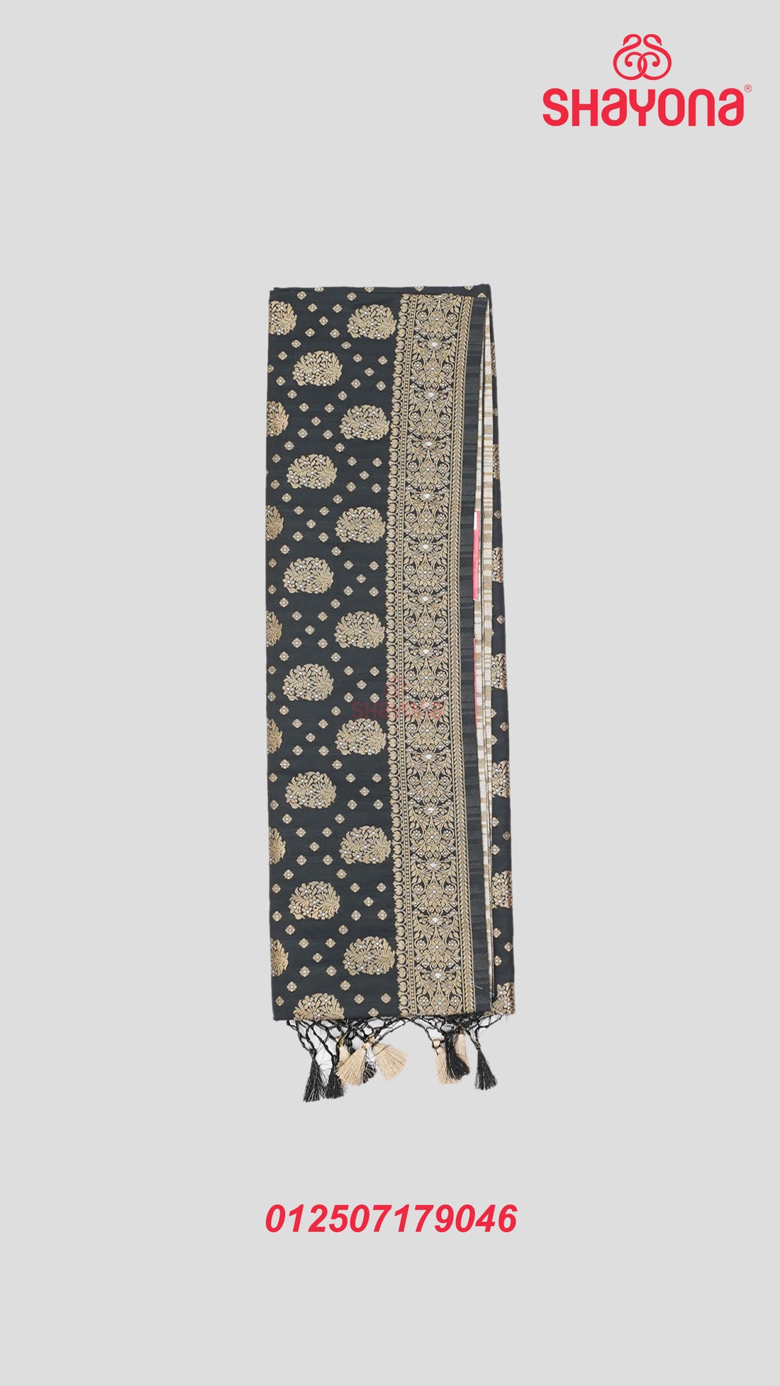 Product Description: Turn heads in timeless elegance with this captivating Black-Coloured Banarasi Georgette Khaddi Print...