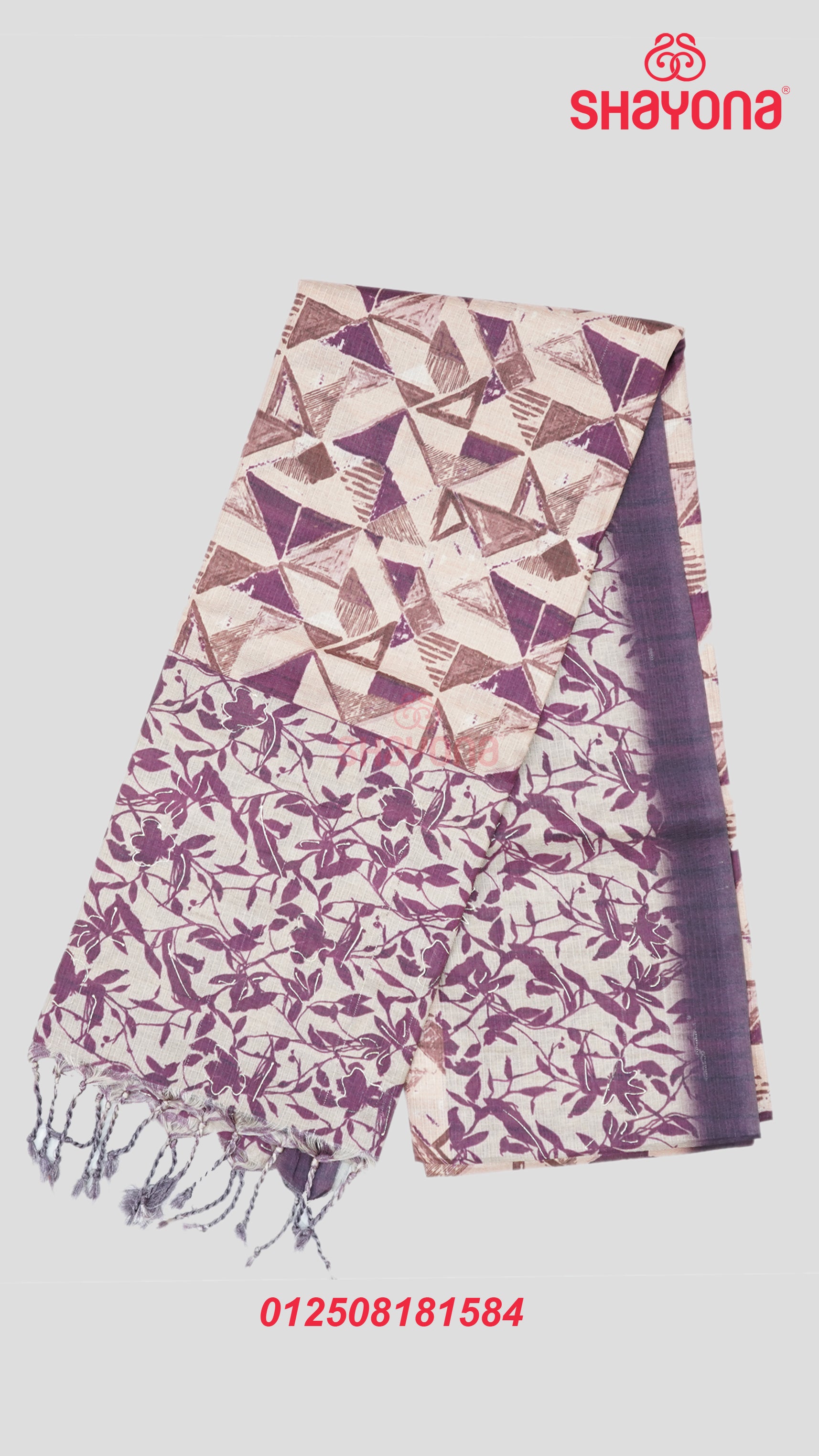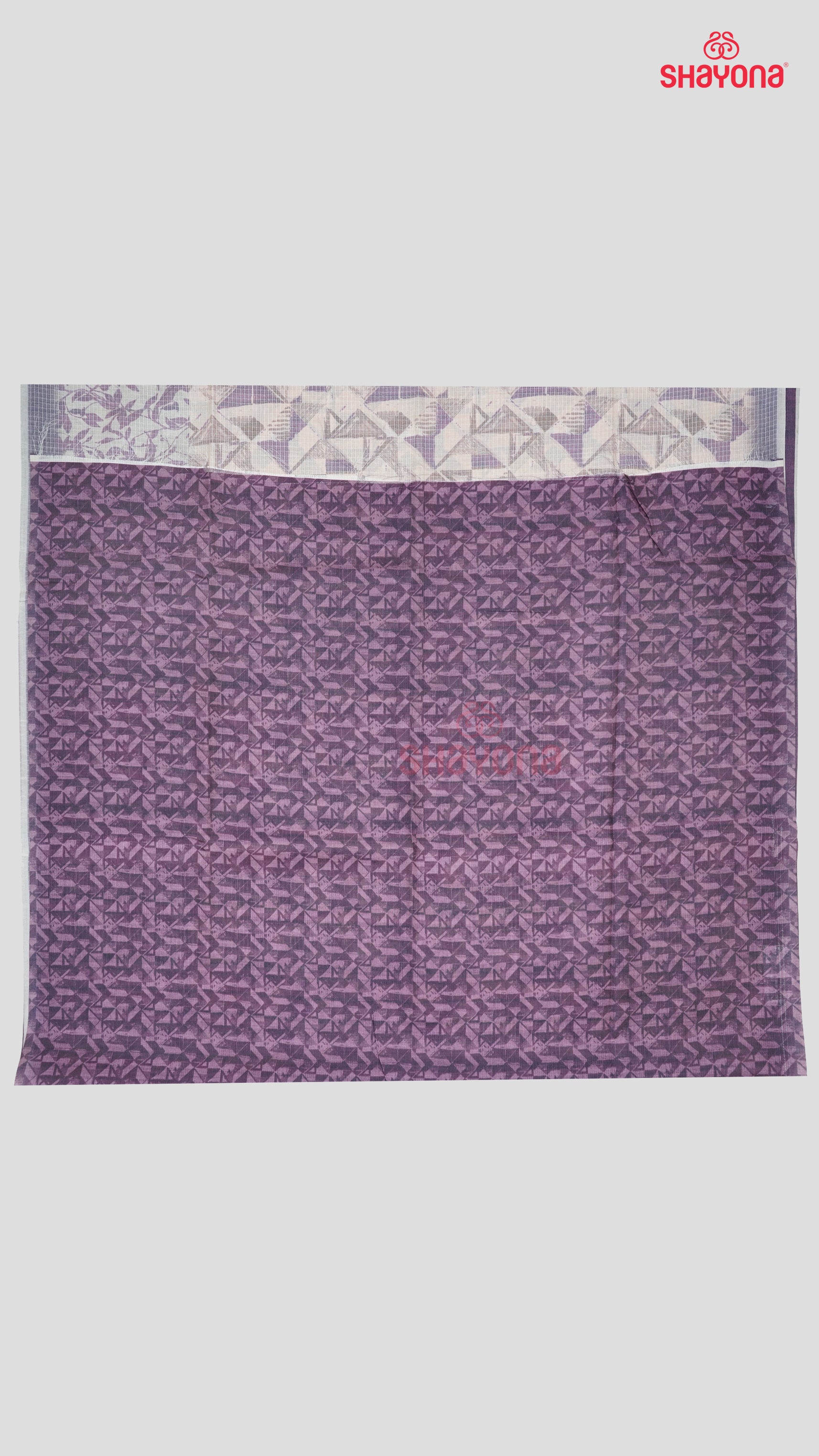 The light bisque coloured gala with digital triangle jaal prints enhances its sophistication, making it a true style statement. Paired with a dark purple coloured blouse (0.80 mts), intricately designed with digital triangle jaal prints all over, this saree is perfect for festivals, weddings, and grand celebrations. Lightweight, elegant, and versatile, it is crafted to make you shine at every occasion.