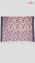 Step into timeless elegance with this Dark Purple Weaved Tussa Based Cotton Saree (5.50 mts), a masterpiece that blends traditional weaving techniques with contemporary digital artistry. The saree is adorned with a digital printed dark purple floral jaal all over, perfectly complemented by a light gold pallav and border that adds regal charm.
