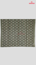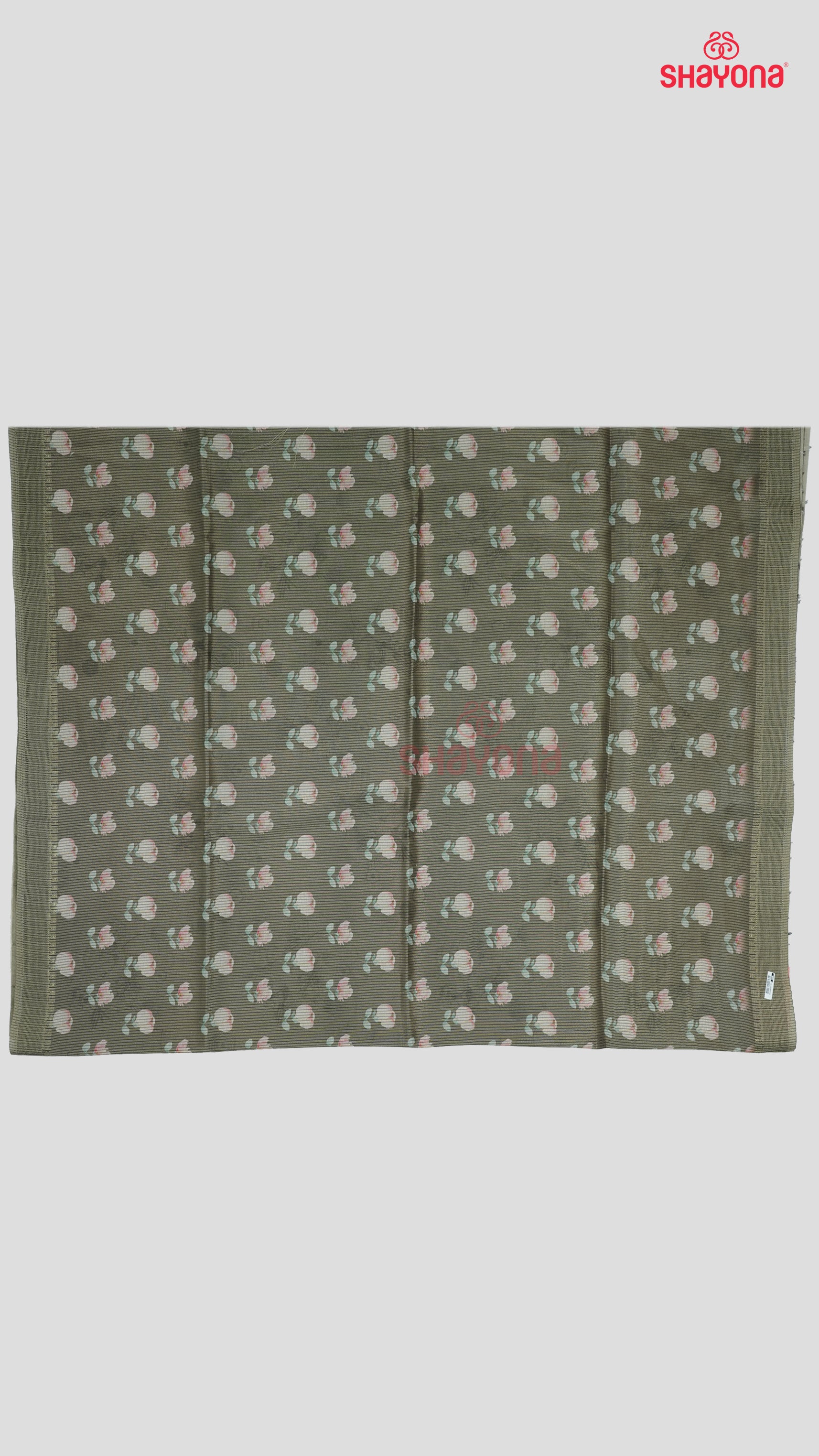 "Celebrate elegance in every drape – Dark sage green tussa cotton with multi-coloured floral butti!"
