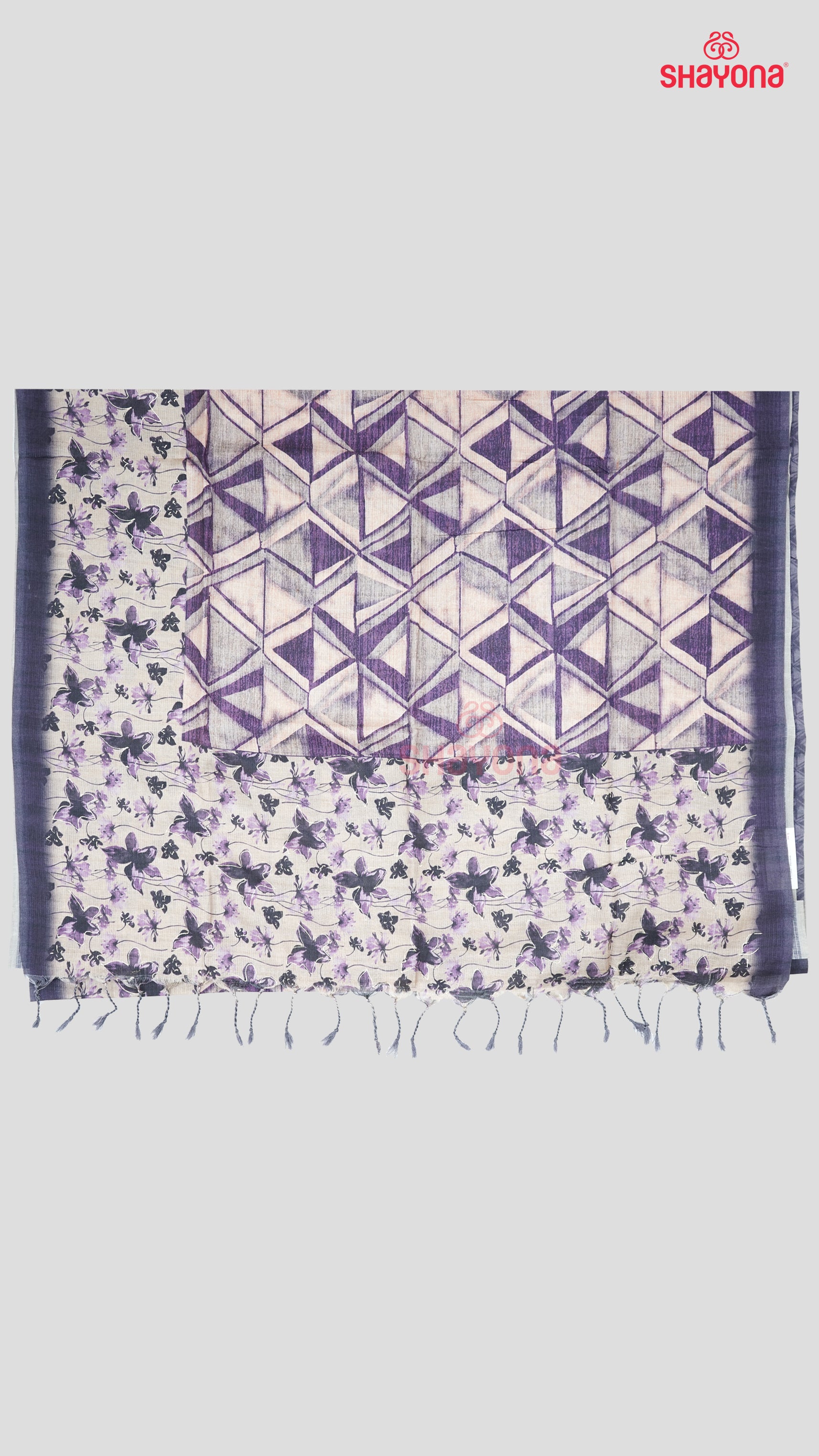 Paired with a indigo blouse (0.80 mts) adorned with digital triangle jaal print all over, this saree is an epitome of grace, making it a perfect choice for festivals, weddings, parties, and cultural occasions. Lightweight and breathable, it offers both style and comfort.