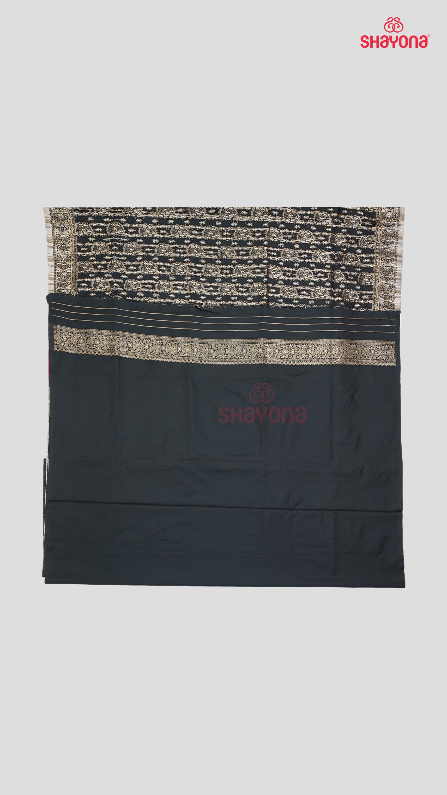 - #BlackBanarasiSaree #DiamondButti #AshavaliWeave #BanarasiElegance #HeavyPallav #NakshiBorder #SoftSilkSaree #ShayonaSilks #TraditionalSaree #SareeLove