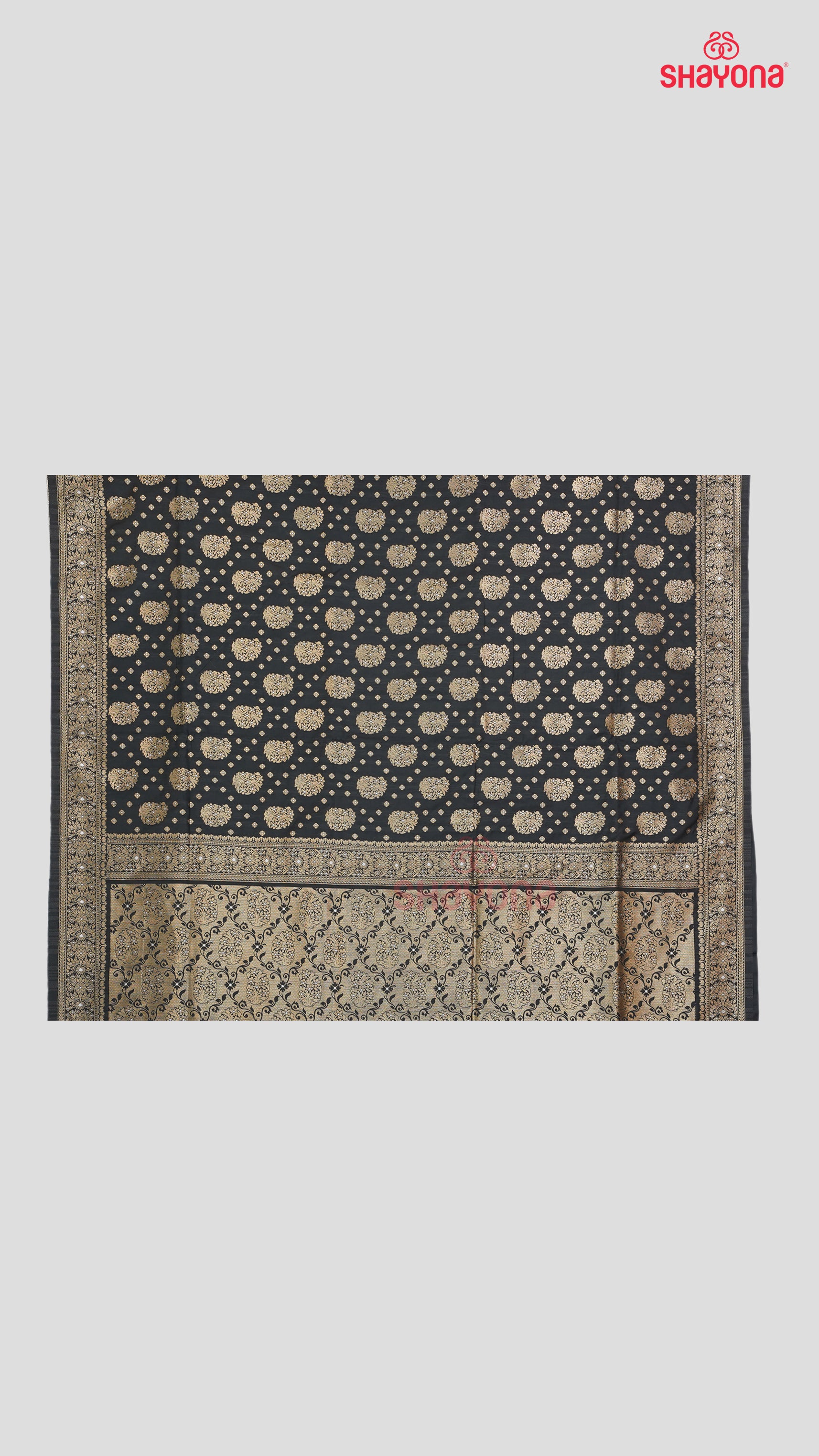 Black Banarasi Silk Ashavali Saree with Diamond Butti Jaal & Heavy Pallav