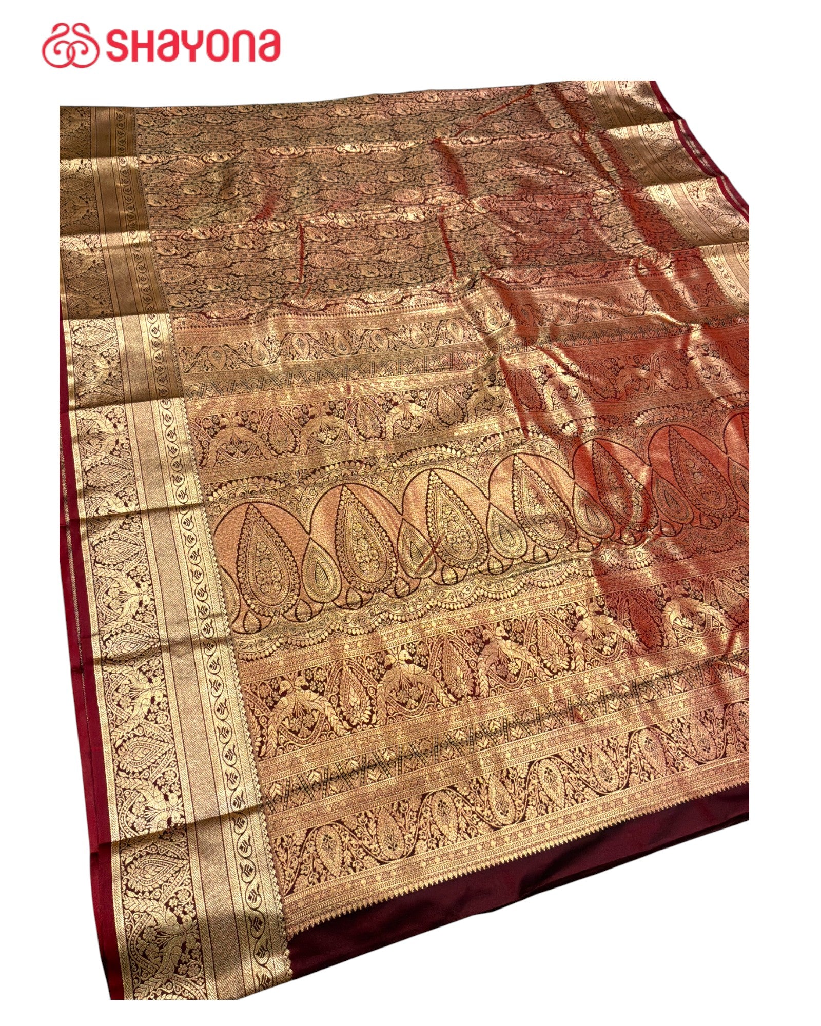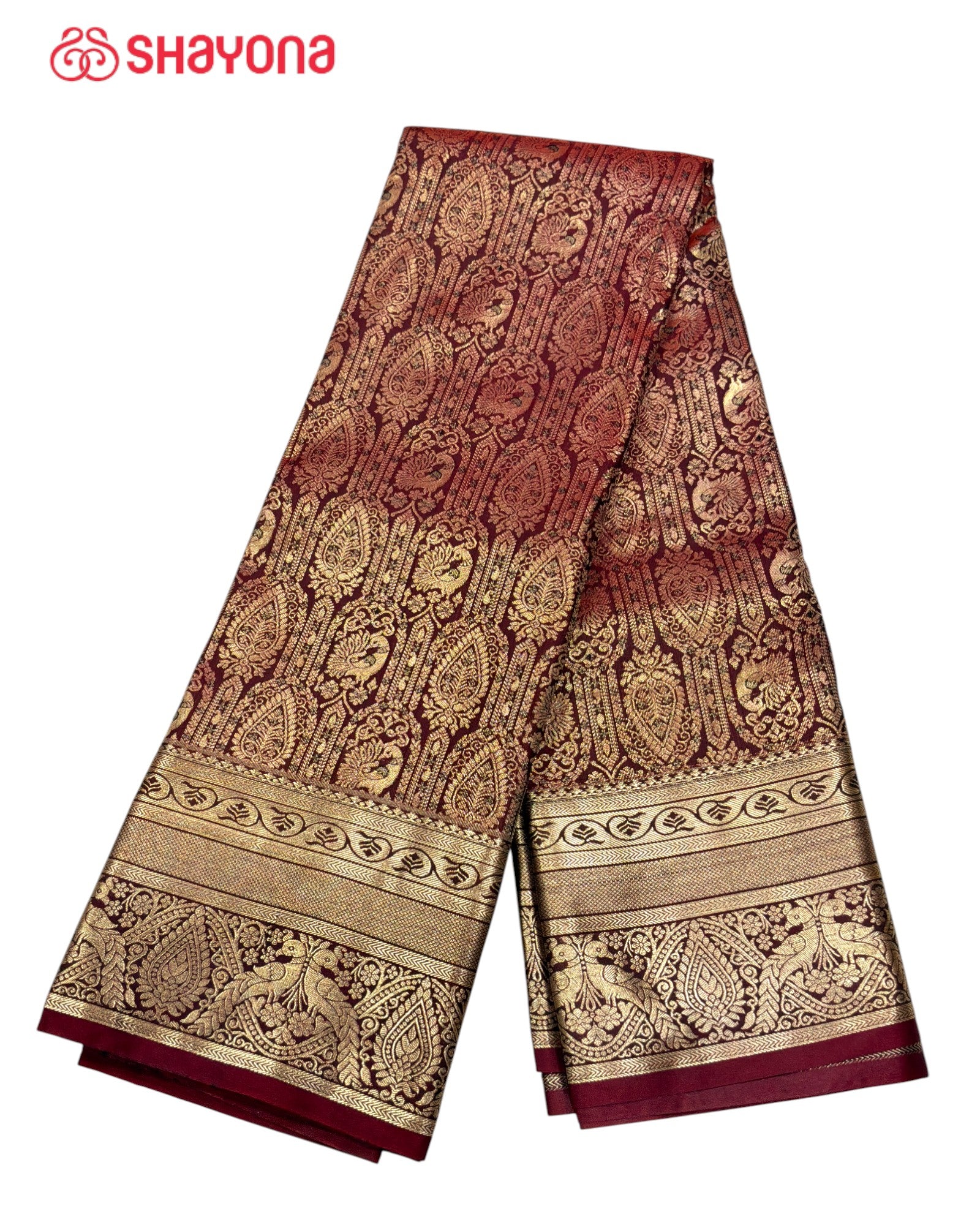 A timeless symbol of South Indian heritage, this Kanjivaram (Kanchipuram) Silk Saree showcases rich silk texture, intricate zari motifs, and a regal drape—perfect for weddings, festivities, and heirloom collections.
