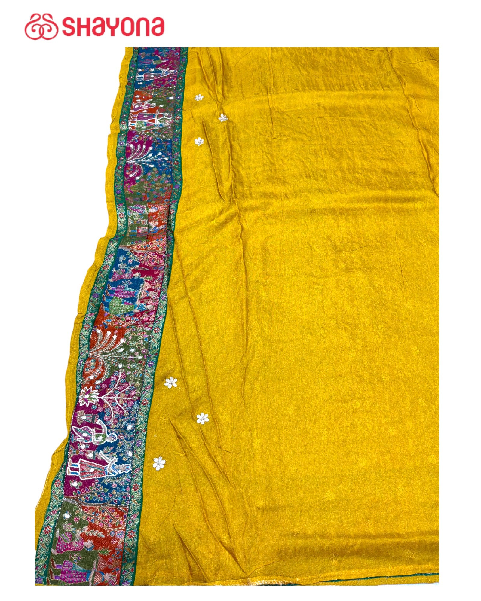 A masterpiece of elegance and heritage, this Tissue Pashmina Silk Saree with Handwork blends luxurious silk with delicate pashmina texture, adorned with intricate hand embroidery that reflects timeless Indian craftsmanship.