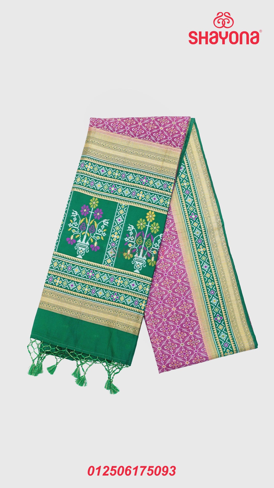 Product Description: Turn heads with this stunning Dark Violet Red & Pomona Green Ghicha Art...