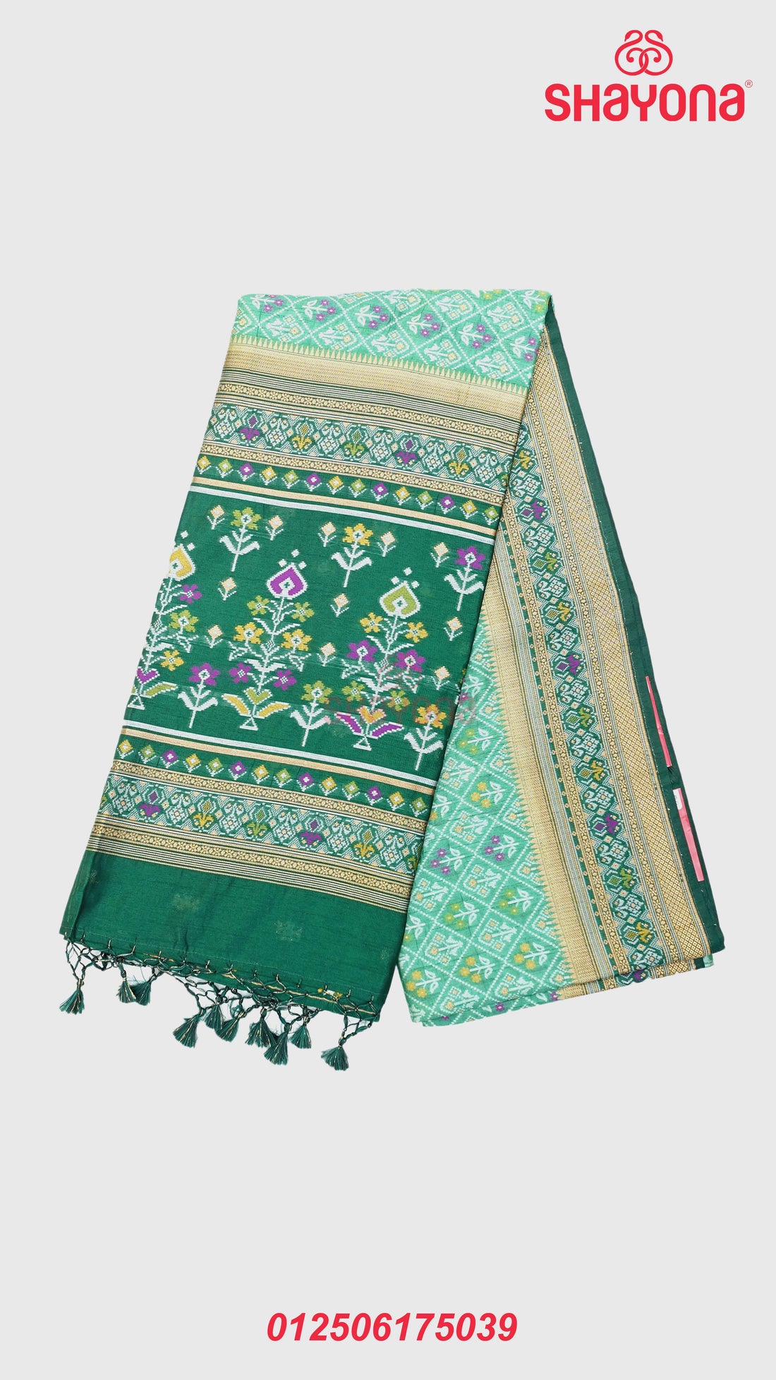 Medium Green & Pomona Green Ghicha Art Silk Saree