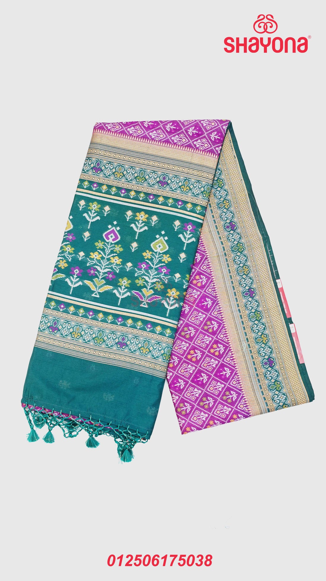 Dark Sea Green & Dark Cadet Blue Ghicha Art Silk Saree