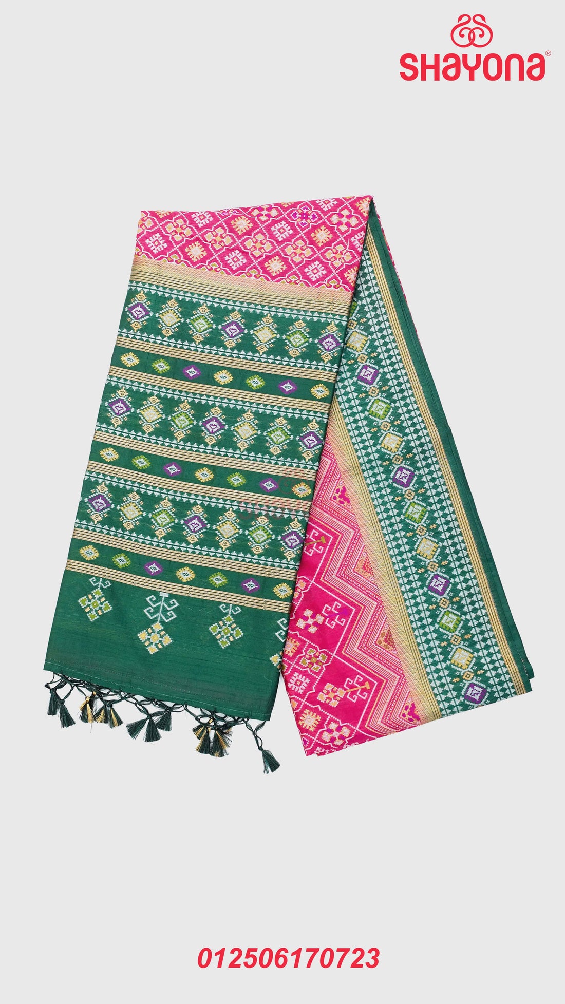 Dark Pink & Dark Green Ghicha Art Silk Saree