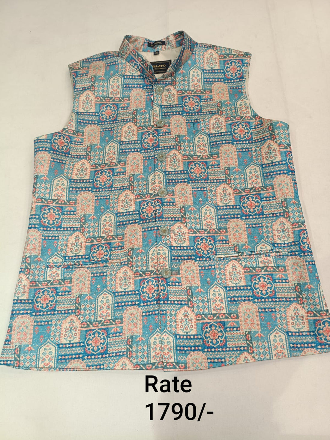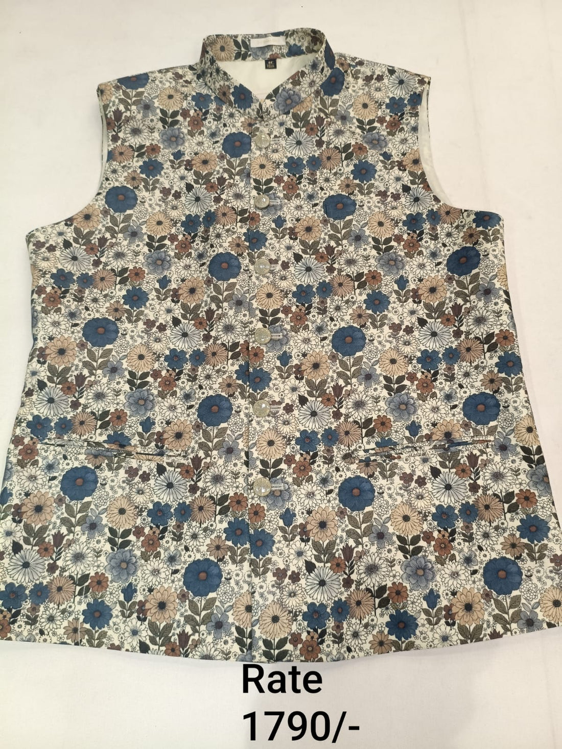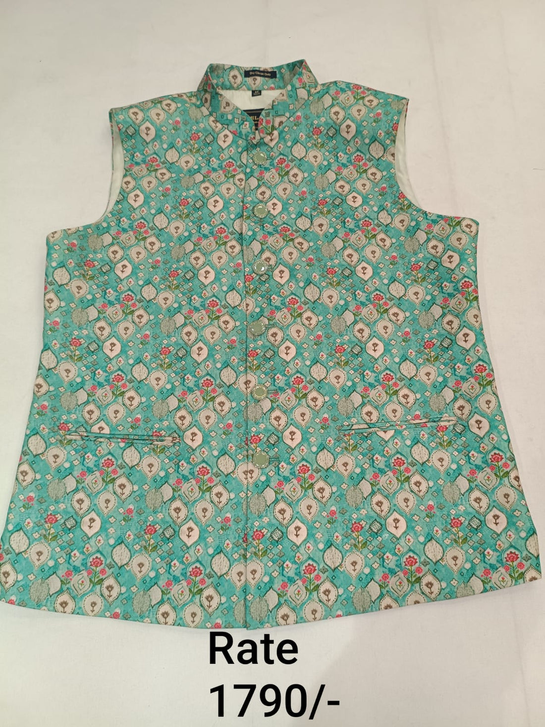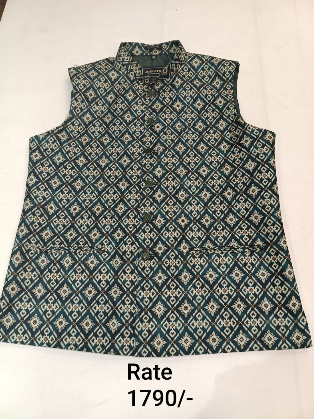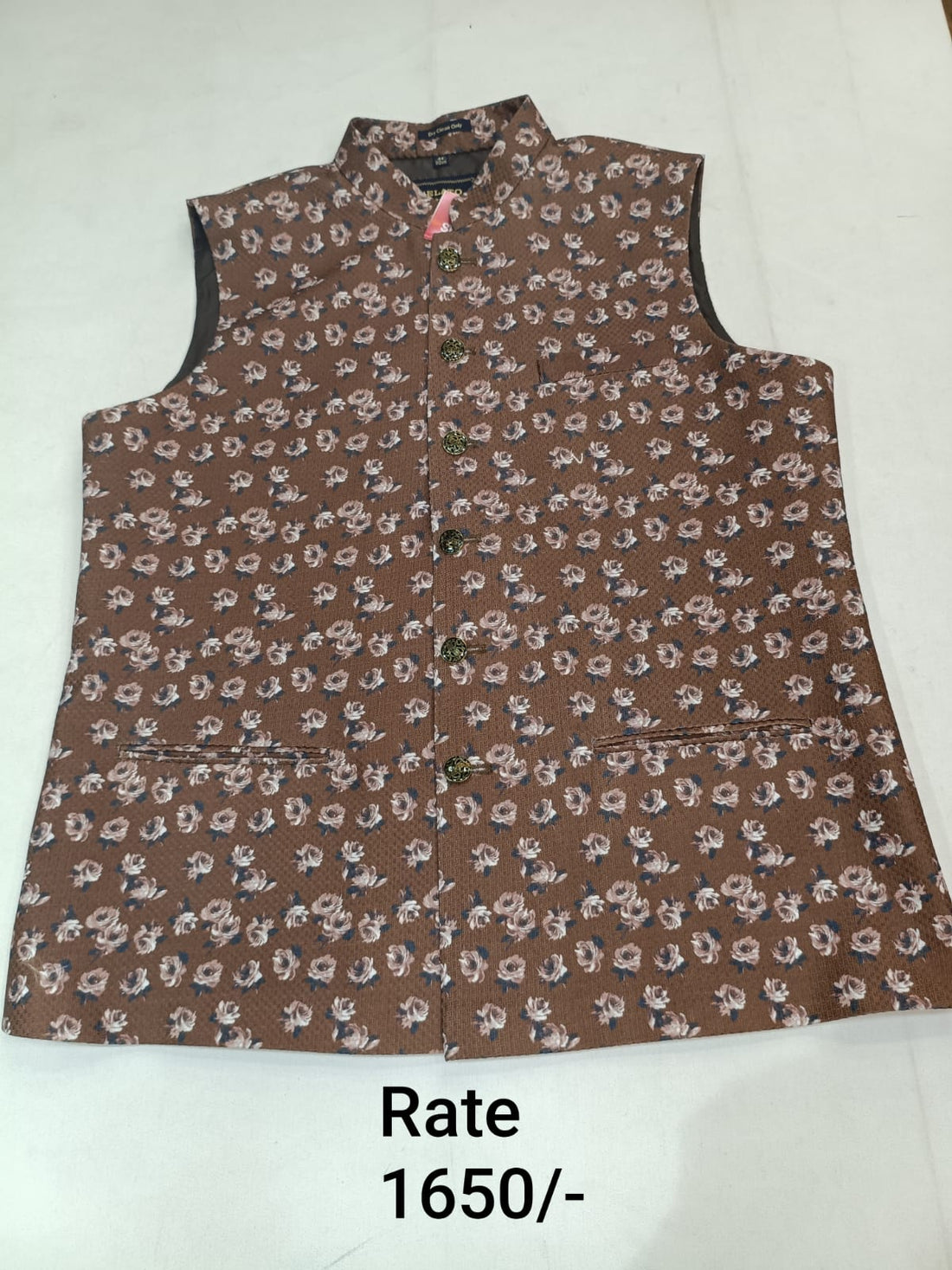 Multi-Coloured Brocade Silk Printed Men's Koti with Stand-Up Collar