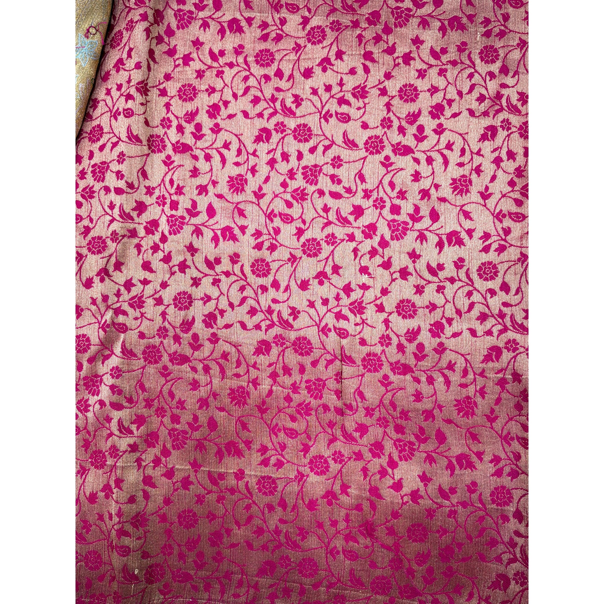 This Pashmina Silk Saree is a celebration of traditional craftsmanship. The base fabric is carefully woven using premium-quality silk blended with fine pashmina yarns, giving it a soft, warm, and luxurious feel.