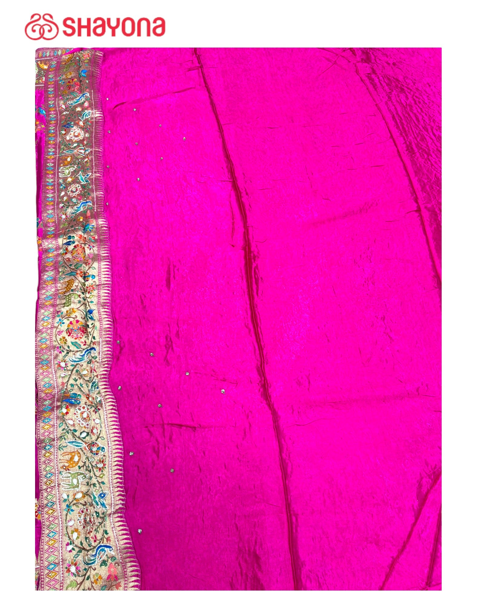 Celebrate timeless elegance with this exquisite Rangkat Silk Saree with Handwork, featuring rich multicolor panels, intricate craftsmanship, and luxurious silk sheen—perfect for weddings, festive occasions, and grand celebrations.