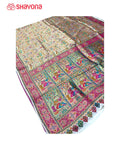 This Tissue Pashmina Silk Saree is crafted using a blend of fine silk yarns and delicate tissue weaving techniques that create its signature luminous finish. Skilled artisans weave intricate traditional motifs inspired by royal Indian heritage, temples, nature, and classical art forms.