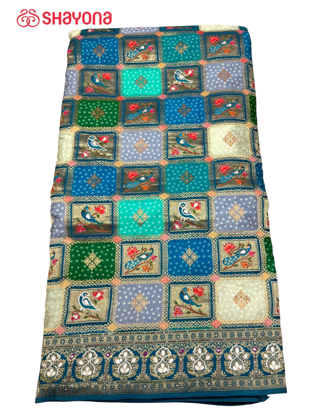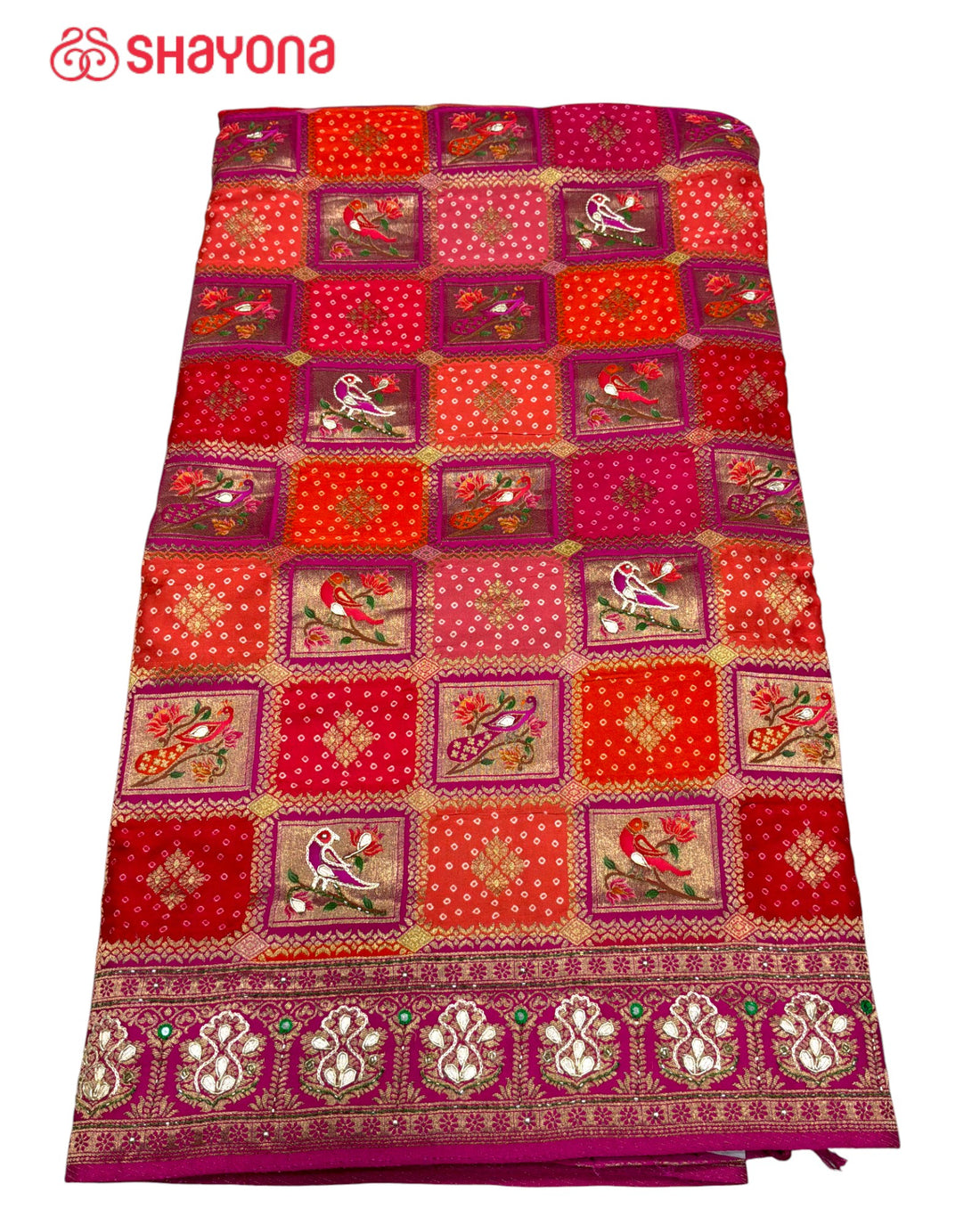 Product Caption Celebrate timeless elegance with this exquisite Rangkat Silk Saree with Handwork, featuring rich...