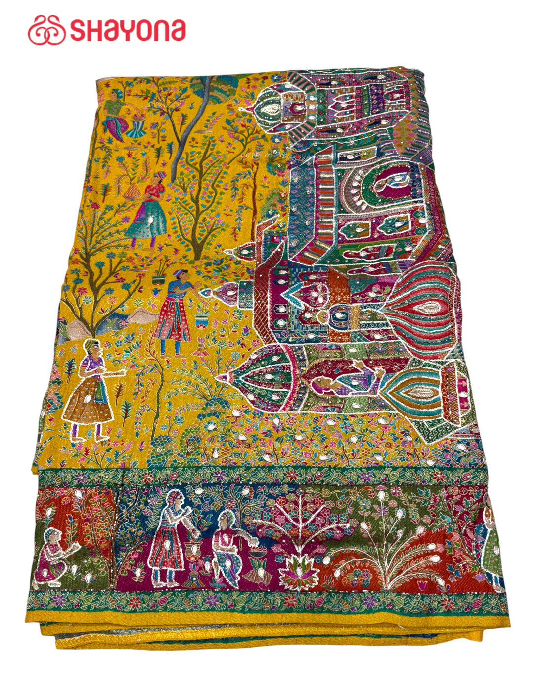 Product Caption A masterpiece of elegance and heritage, this Tissue Pashmina Silk Saree with Handwork...