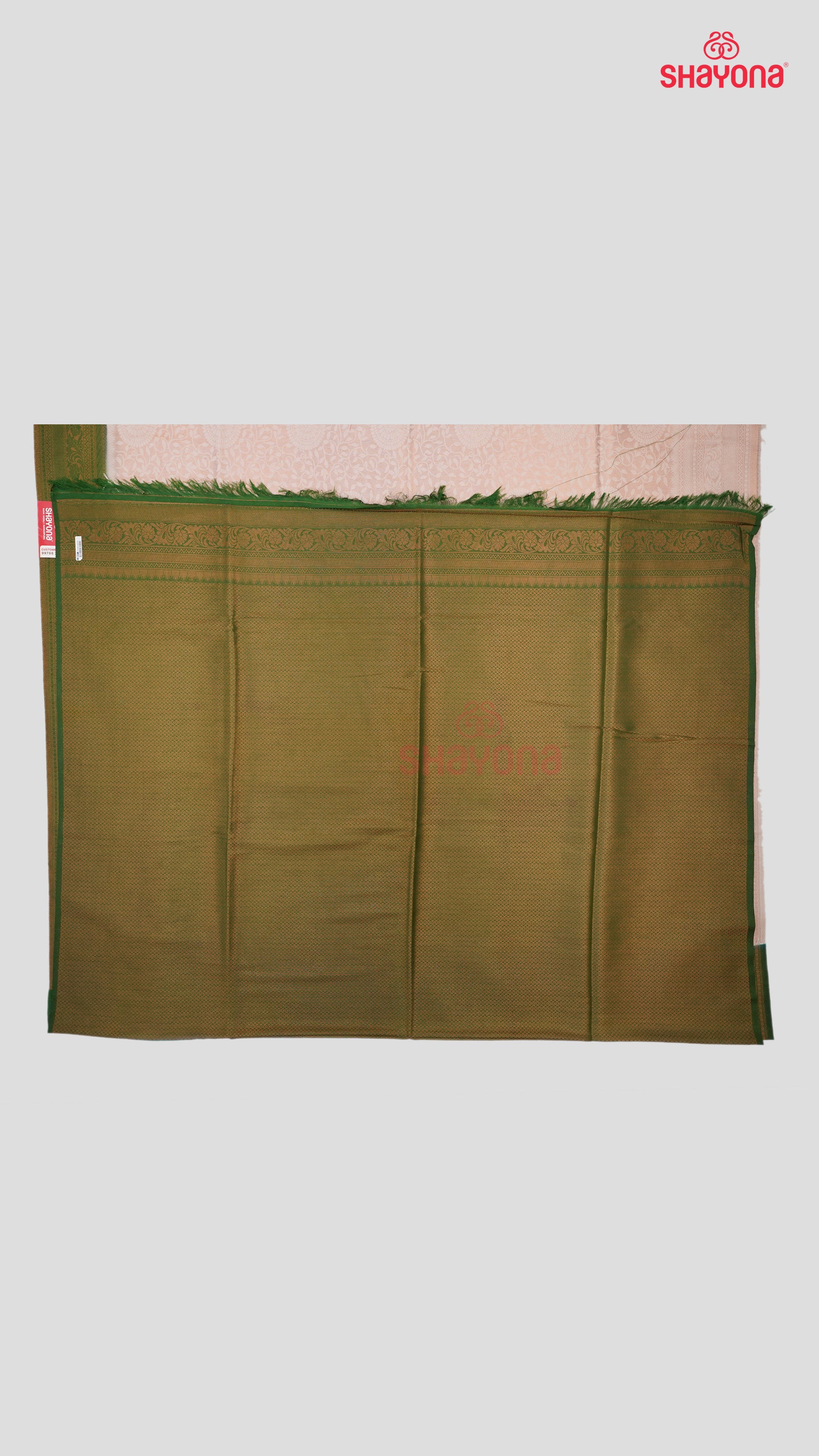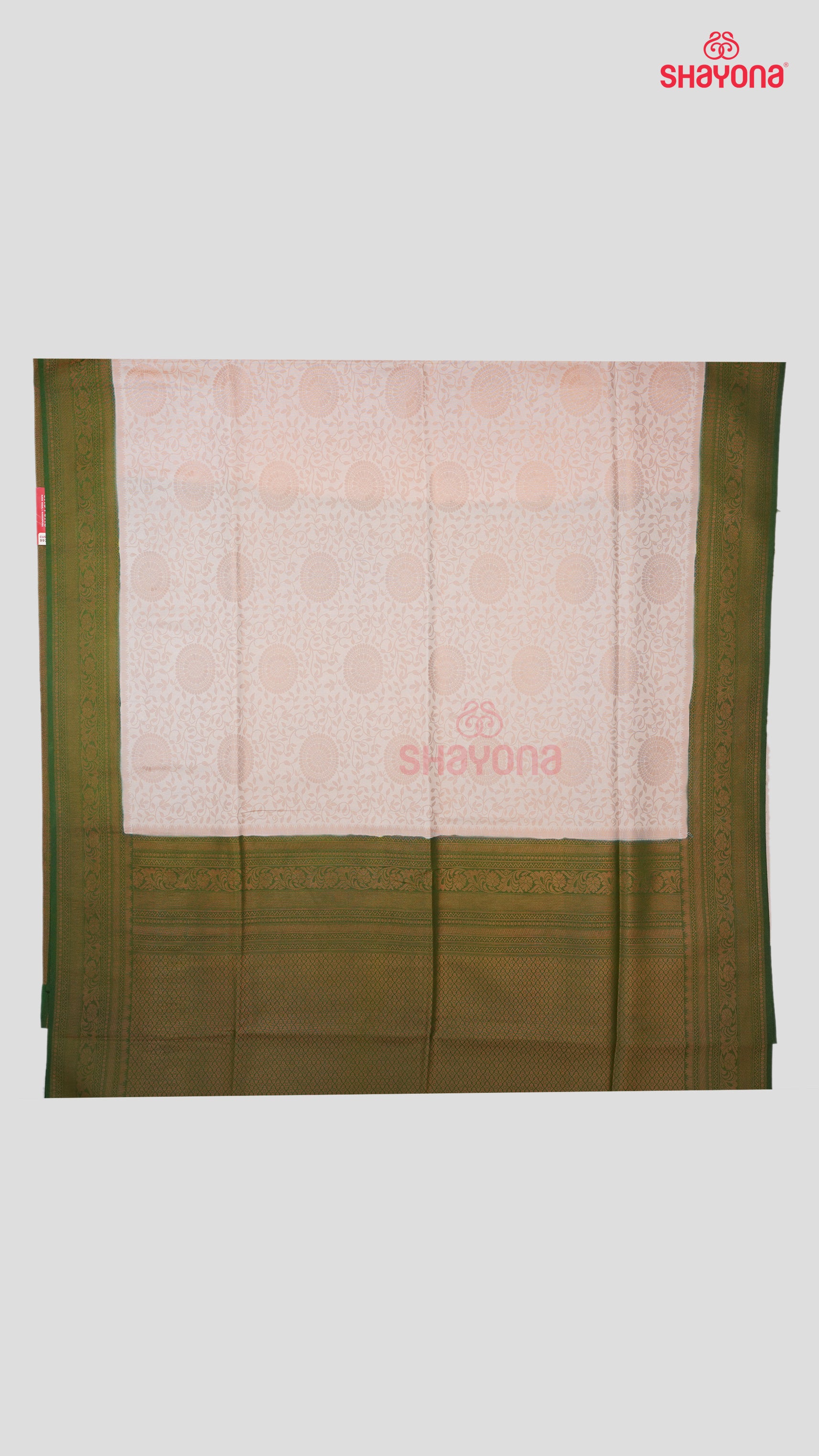 Dark Green & Antique White Banarasi Soft Silk Saree with Copper Butta & Nakshi Border