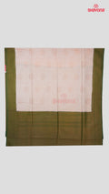 Unveil the elegance of tradition with this breathtaking combination of Dark Green and Antique White Banarasi soft silk saree. Adorned with all-over copper butta and floral jaal weaving, this saree features an opulent nakshi border and heavy pallav that speaks volumes of Banarasi heritage. The copper zari work adds a touch of vintage grandeur, making it ideal for festive wear, weddings, and special celebrations. Accompanied by a 0.80-meter blouse with matching border to complete your look.