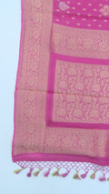 Light Deep Pink Banarasi Georgette Khaddi Print Soft Silk Saree with Butta & Butti Gala, Jaal Nakshi Border & Heavy Pallav