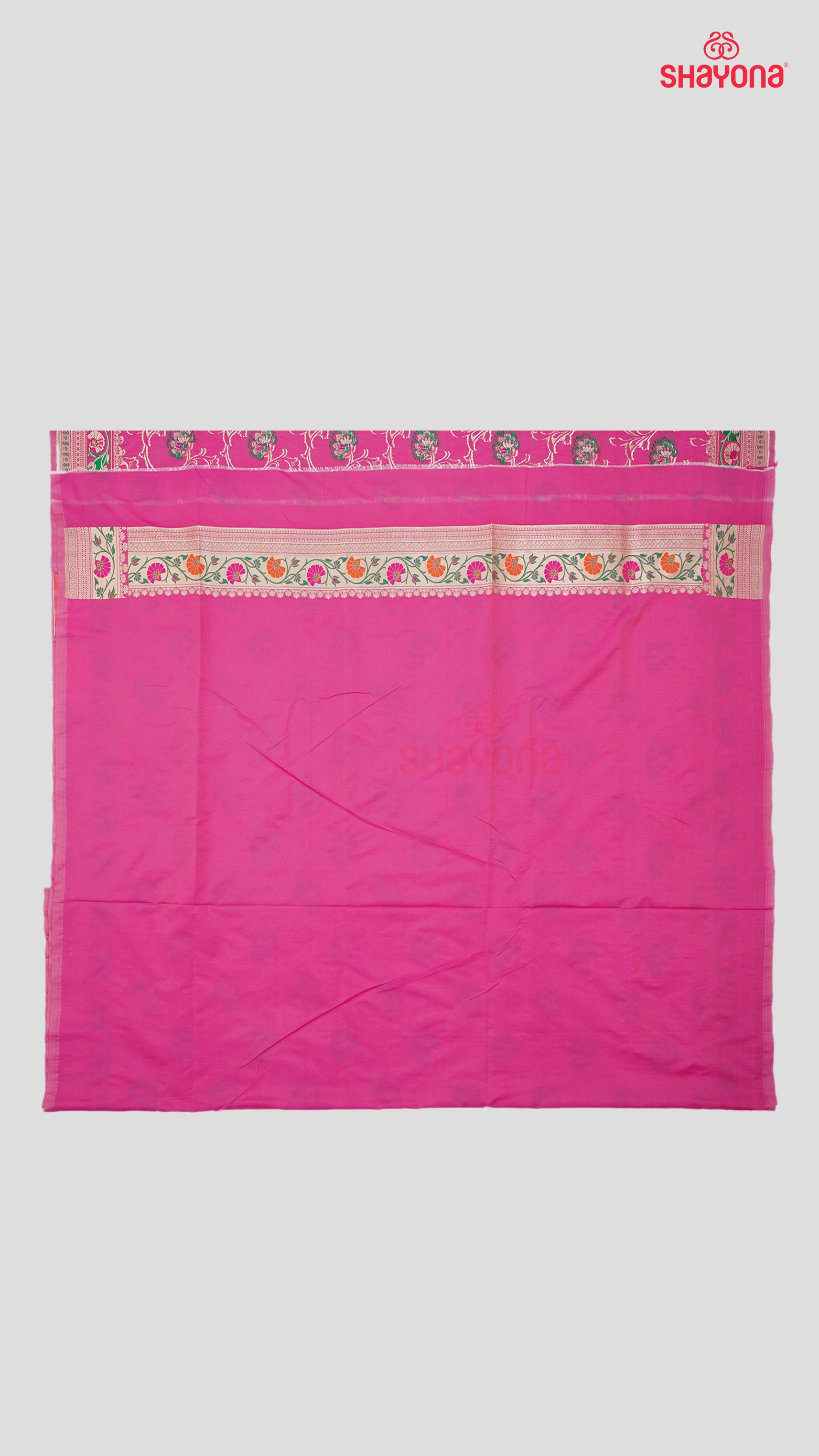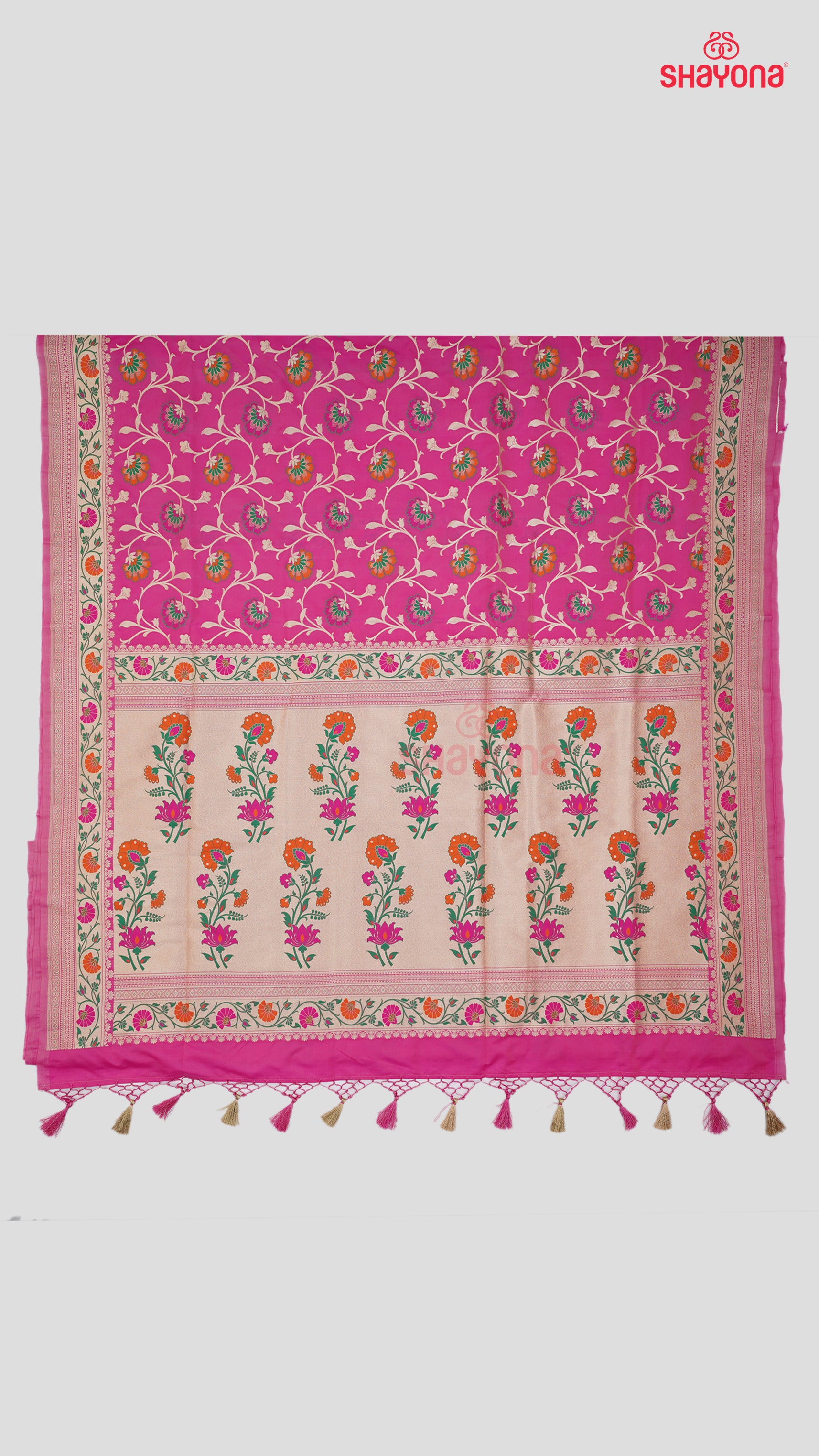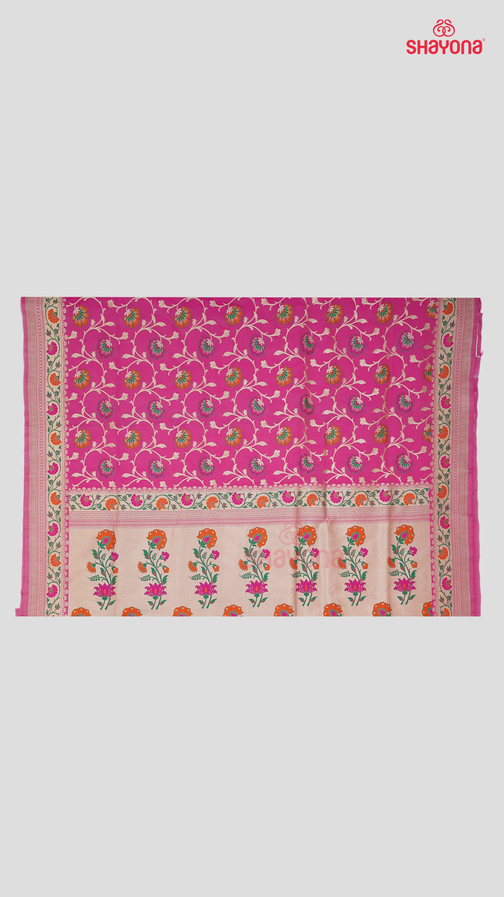 Light Deep Pink Banarasi Silk Ashavali Saree with Minakari Jaal Work