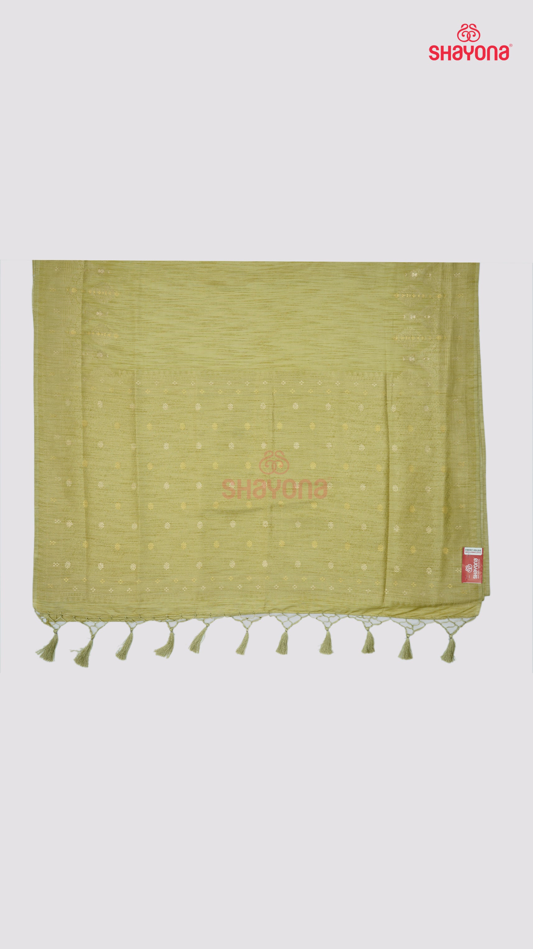 This saree comes with a matching blouse of 0.80 meters, completing the traditional yet refined look.