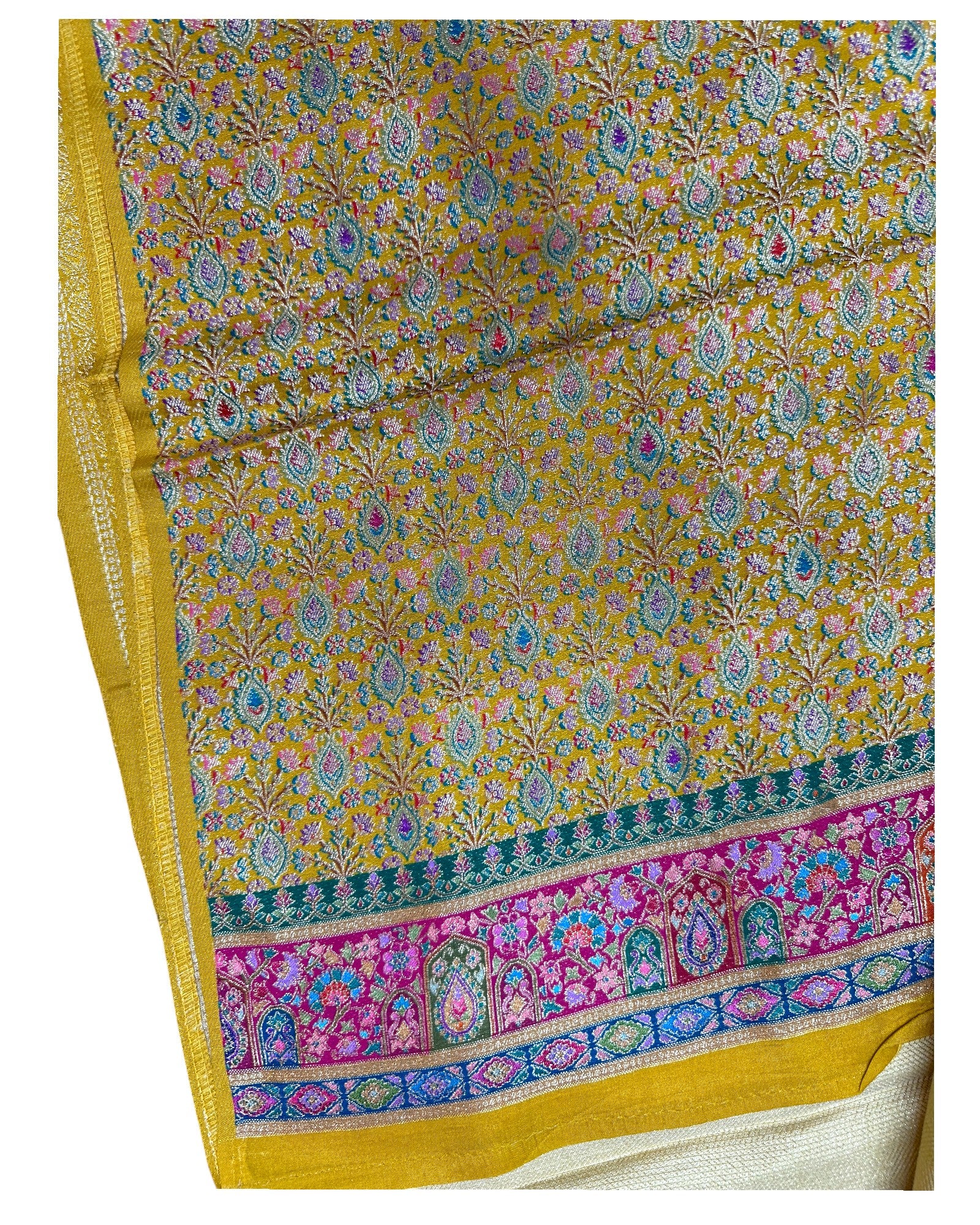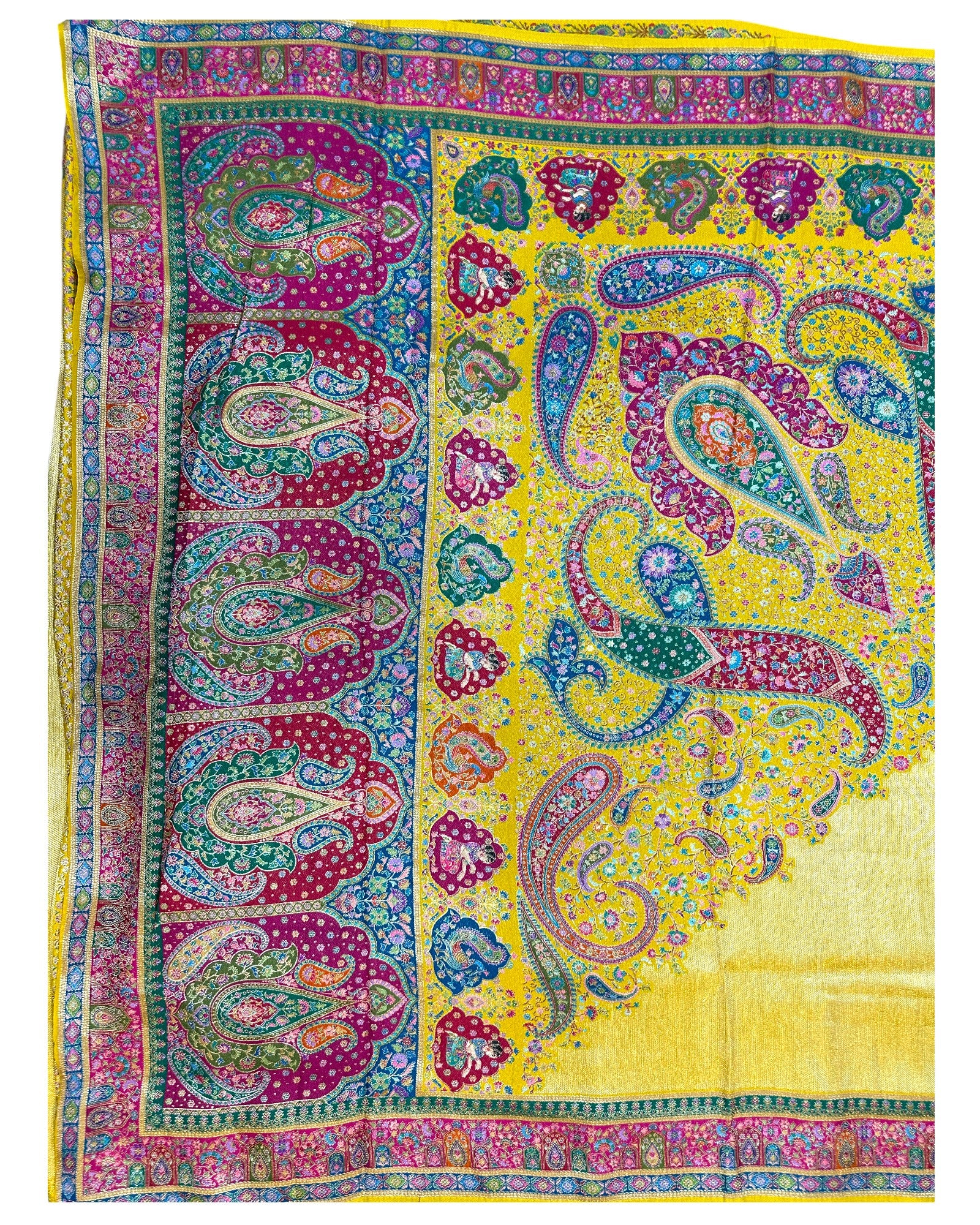 "Yellow Tissue Pashmina Silk Saree – Radiant Weaves of Royalty"