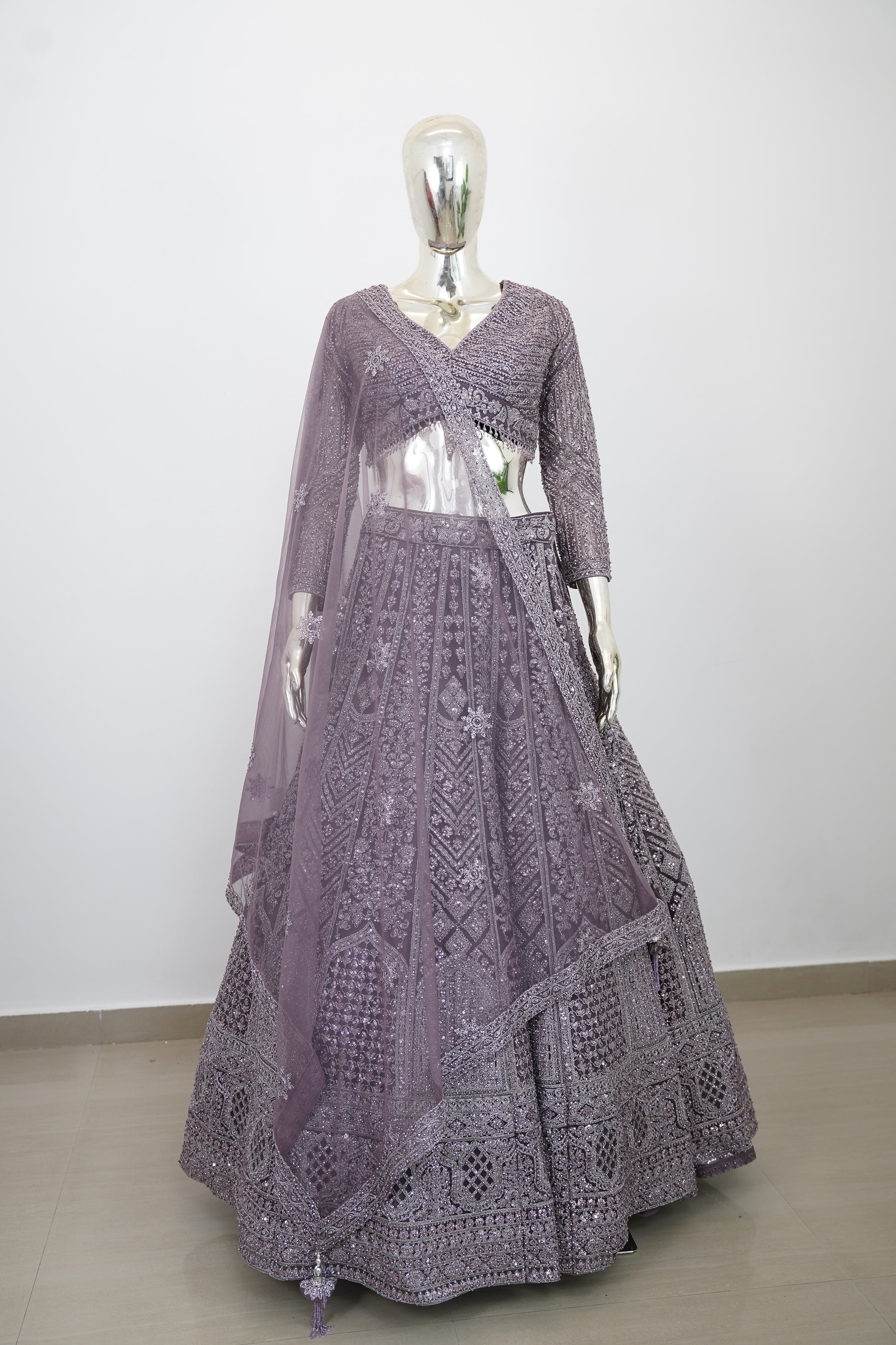 Work: HEAVY HANDWORK JAAL ALL OVER LEHENGA