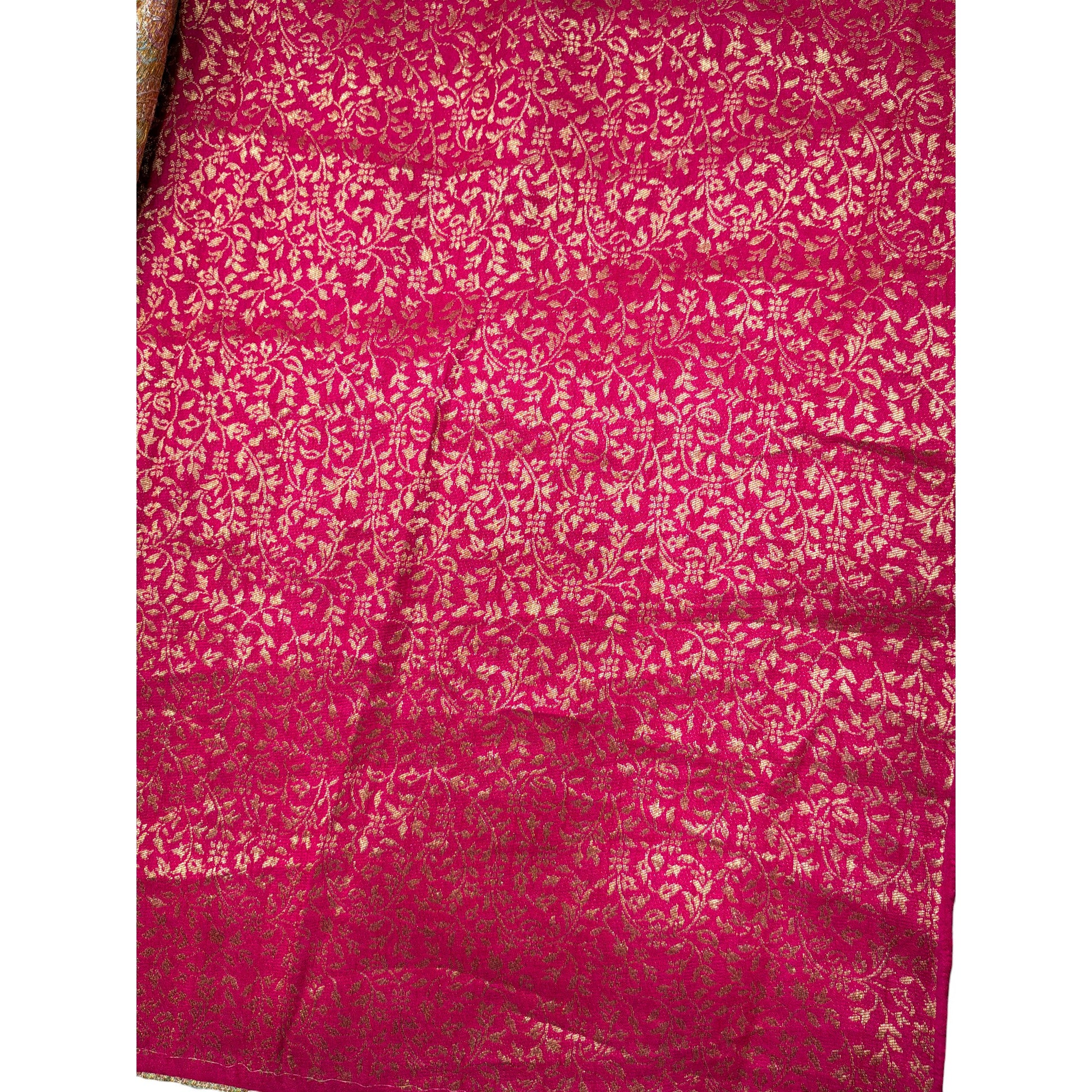 This Pashmina Silk Saree is a celebration of traditional craftsmanship. The base fabric is carefully woven using premium-quality silk blended with fine pashmina yarns, giving it a soft, warm, and luxurious feel.