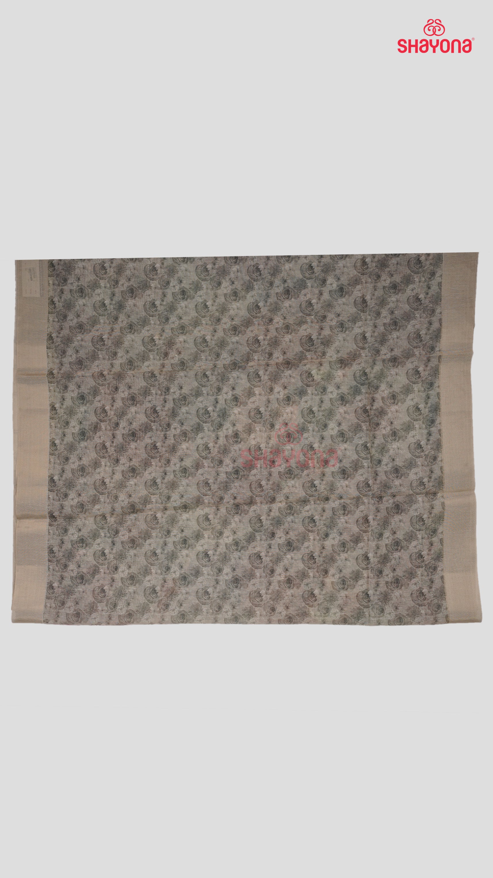 Almond Tussa Based Cotton Saree with Digital Floral Print