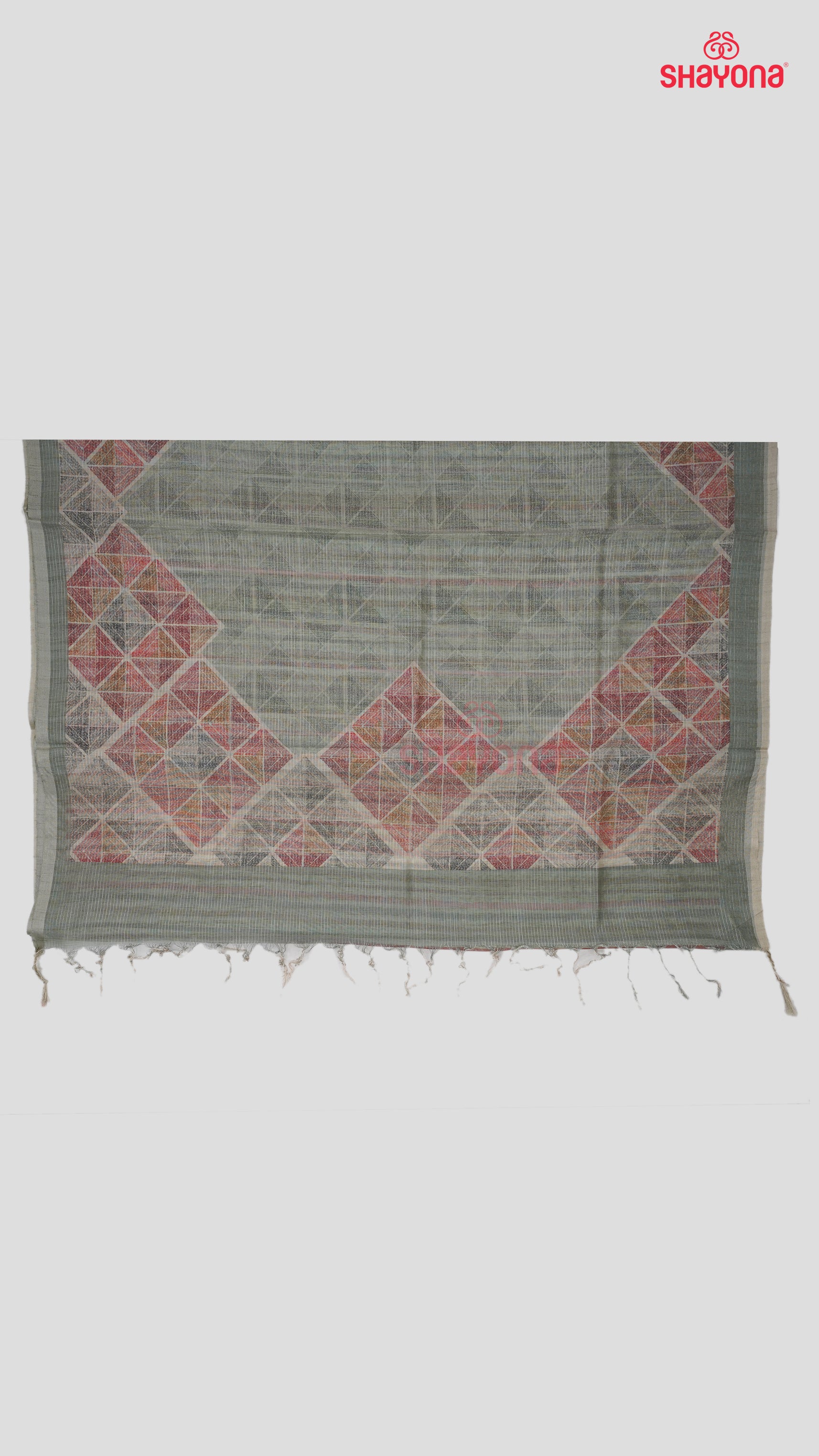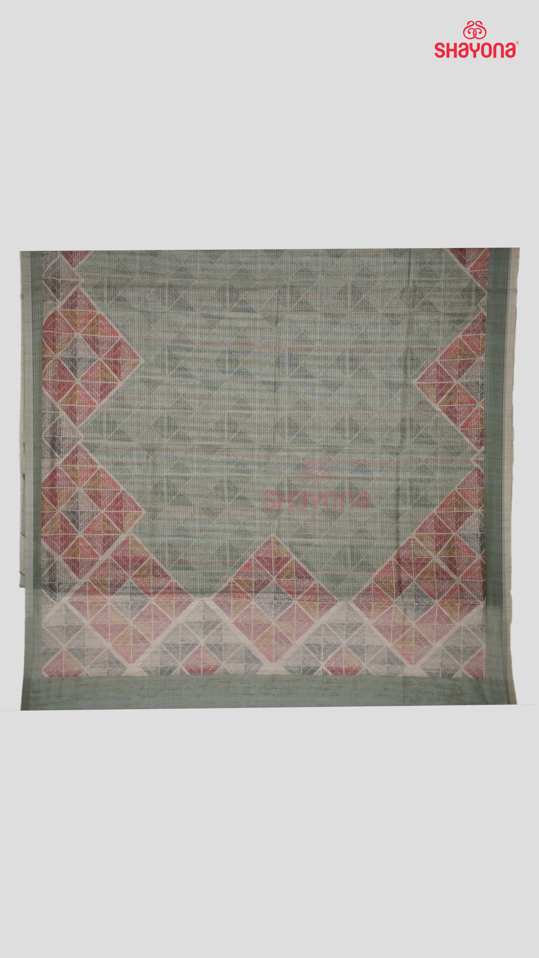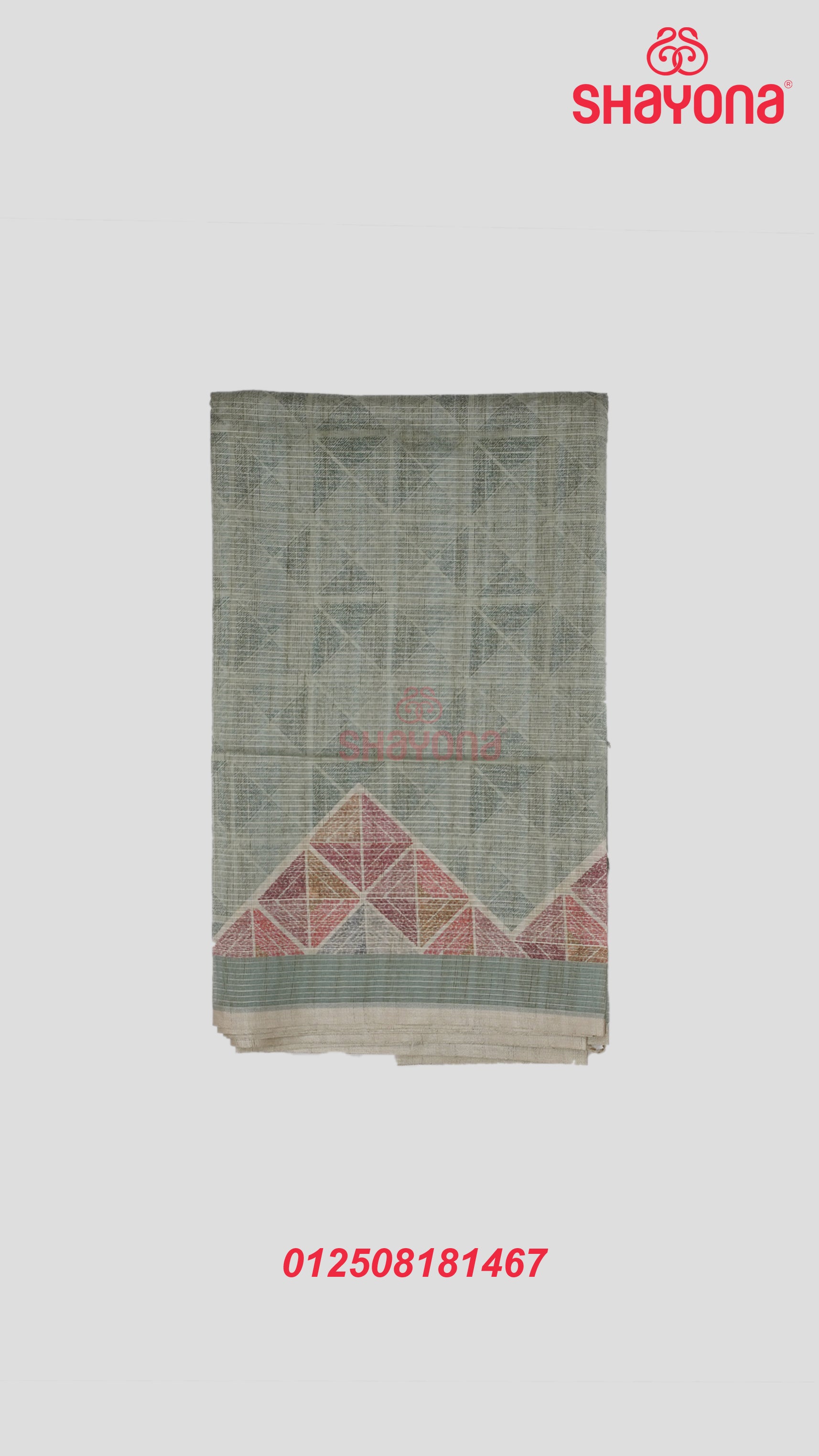 Aqua Tussa Based Cotton Saree with Digital Square Diamond Design