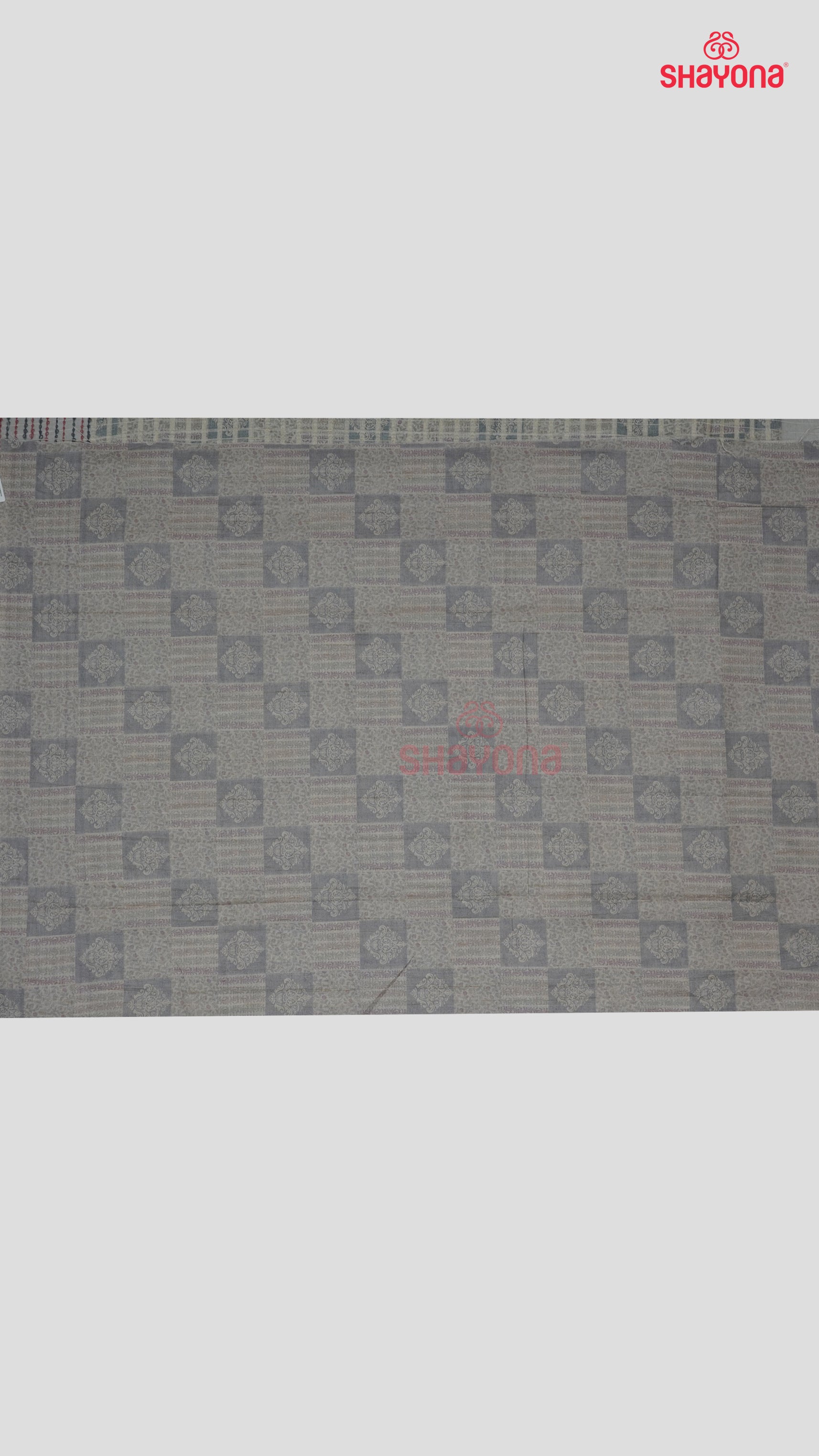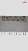 Gray & Multicolor Tussa-Based Cotton Saree with Golden Chanderi Checks & Digital Print