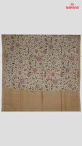 Light Gold Tussa Based Cotton Saree with Multicoloured Floral Jaal