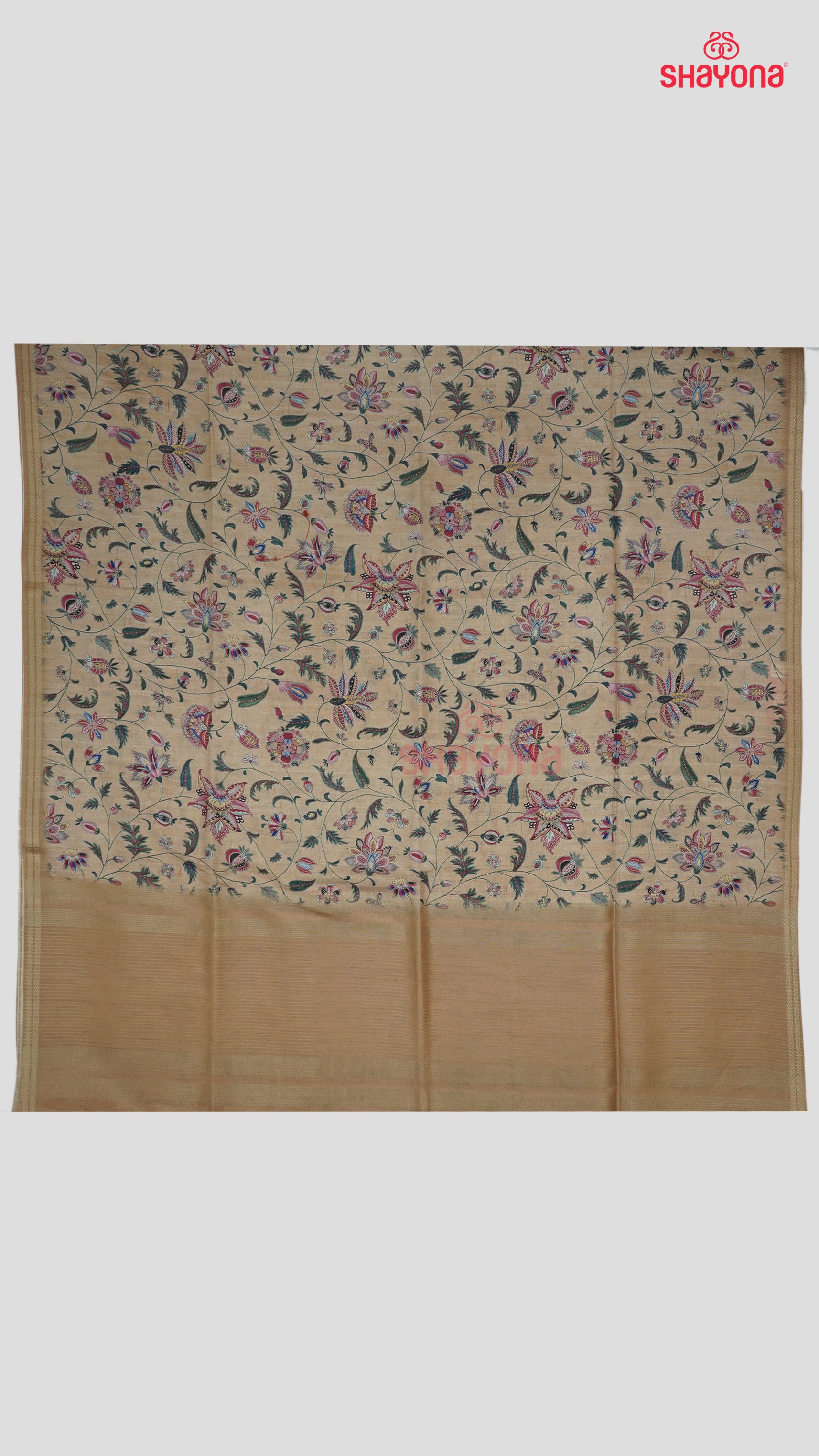 #LightGoldSaree #FloralJaalSaree #DigitalPrintSaree #TussaCottonSaree #DesignerSarees #GoldenElegance #ShayonaSarees #FestiveWearSaree #LuxuryDrapes #EthnicStyle