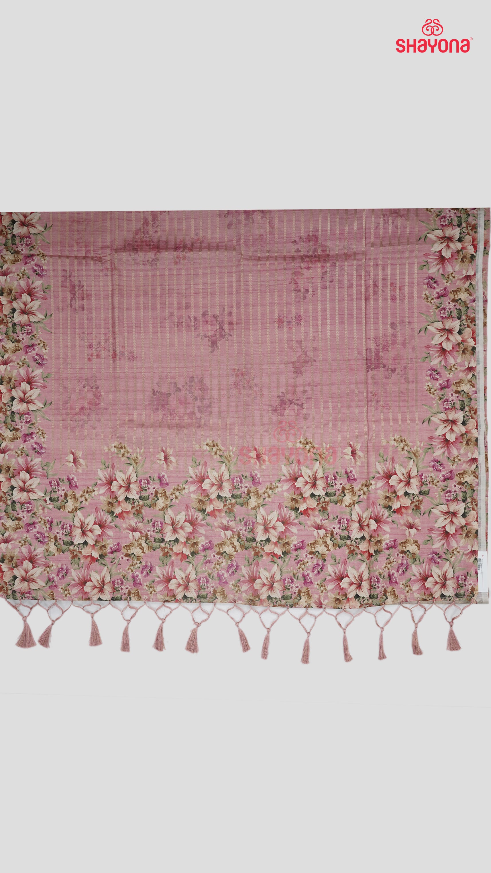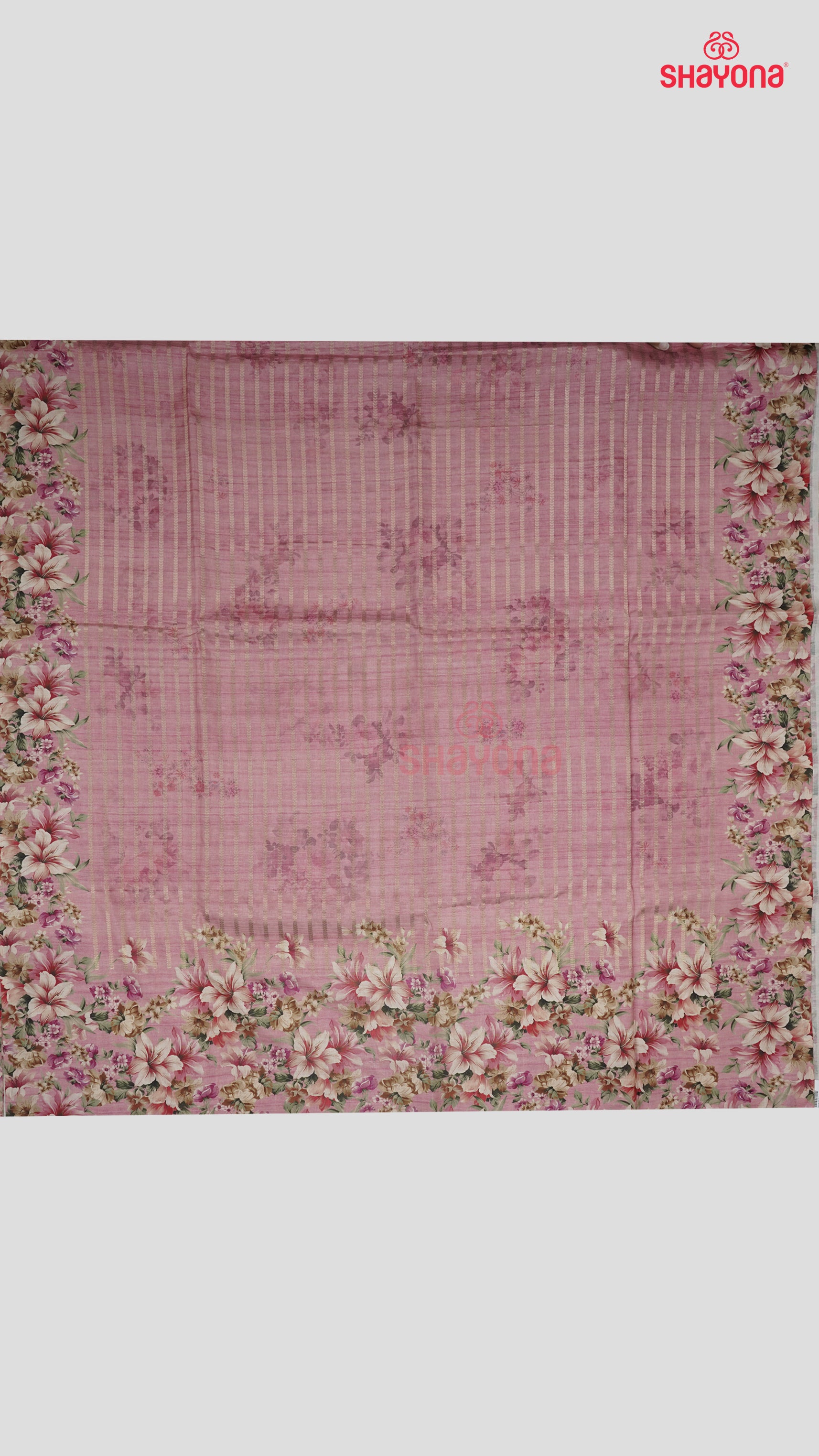 #PinkSaree #FloralJaalSaree #TussaCottonSaree #DigitalPrintSaree #DesignerCottonSaree #PinkElegance #ShayonaSarees #MulticolouredFloralSaree #FestiveCottonSaree #ElegantWeaves