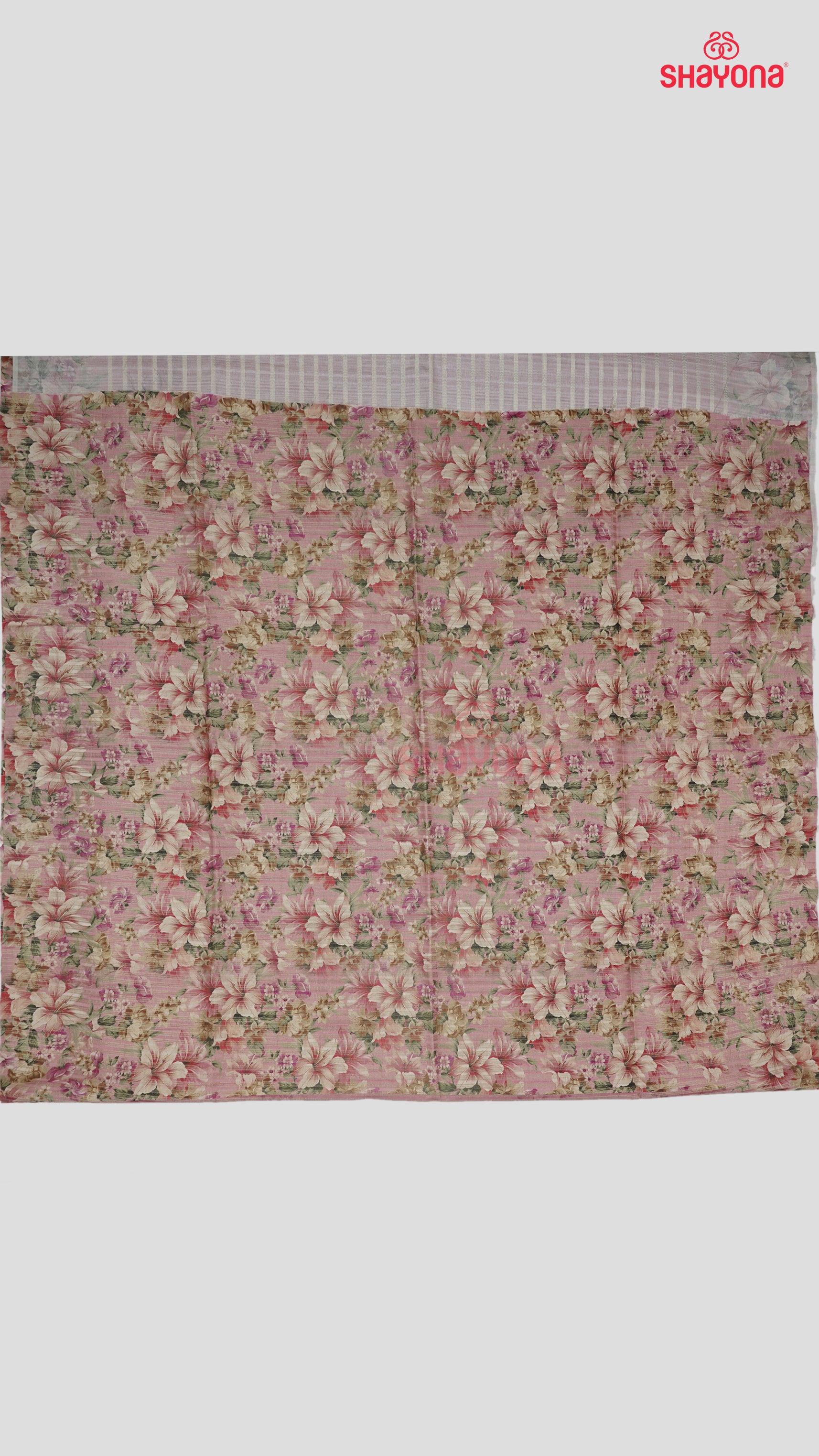 Pink Tussa Based Cotton Saree with Multicoloured Floral Jaal