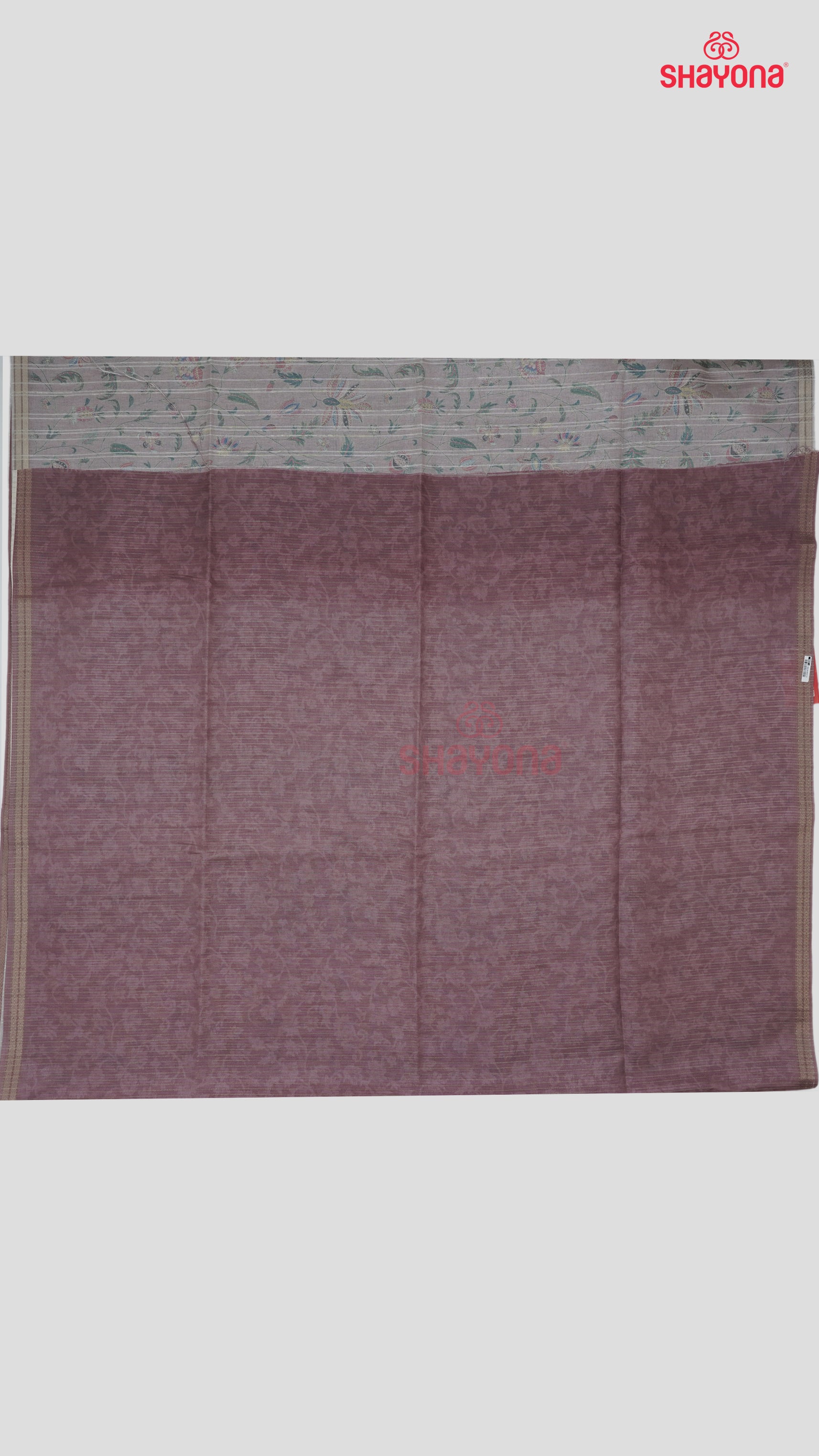 Rose Gold Tussa Based Cotton Saree with Multicoloured Floral Jaal