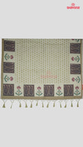 Sage Green Weaved Tussa-Based Cotton Saree with Dark Sage Green Digital Checks & Border