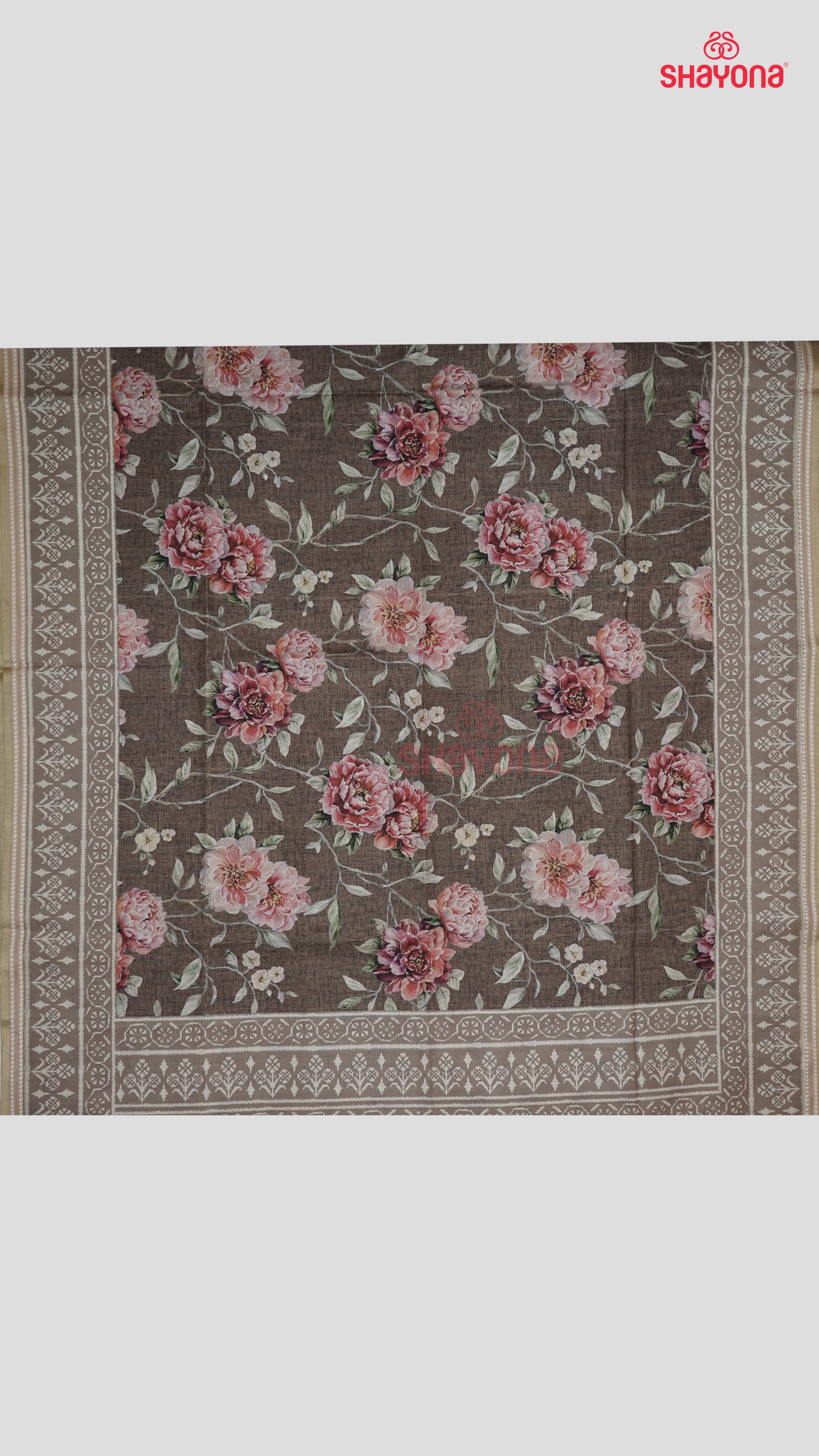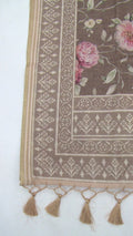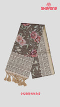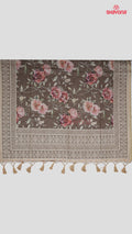 "Wood Gray Tussa Cotton Saree – Floral Elegance in Every Fold!"