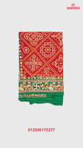Step into the grace of tradition with this Maroon & Dark Green Pure Gajji Silk Gharchola Saree, a masterpiece of heritage craftsmanship and symbolism. Crafted in rich Gajji silk, this saree spans 5.50 meters in length and features a plain & border blouse (0.80 meters) to complete the regal ensemble.