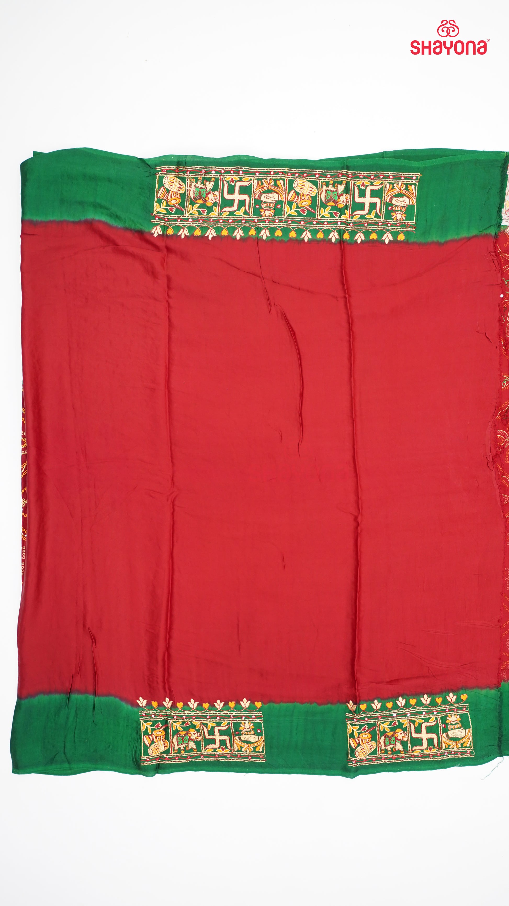 Maroon & Dark Green Pure Gajji Silk Gharchola Saree