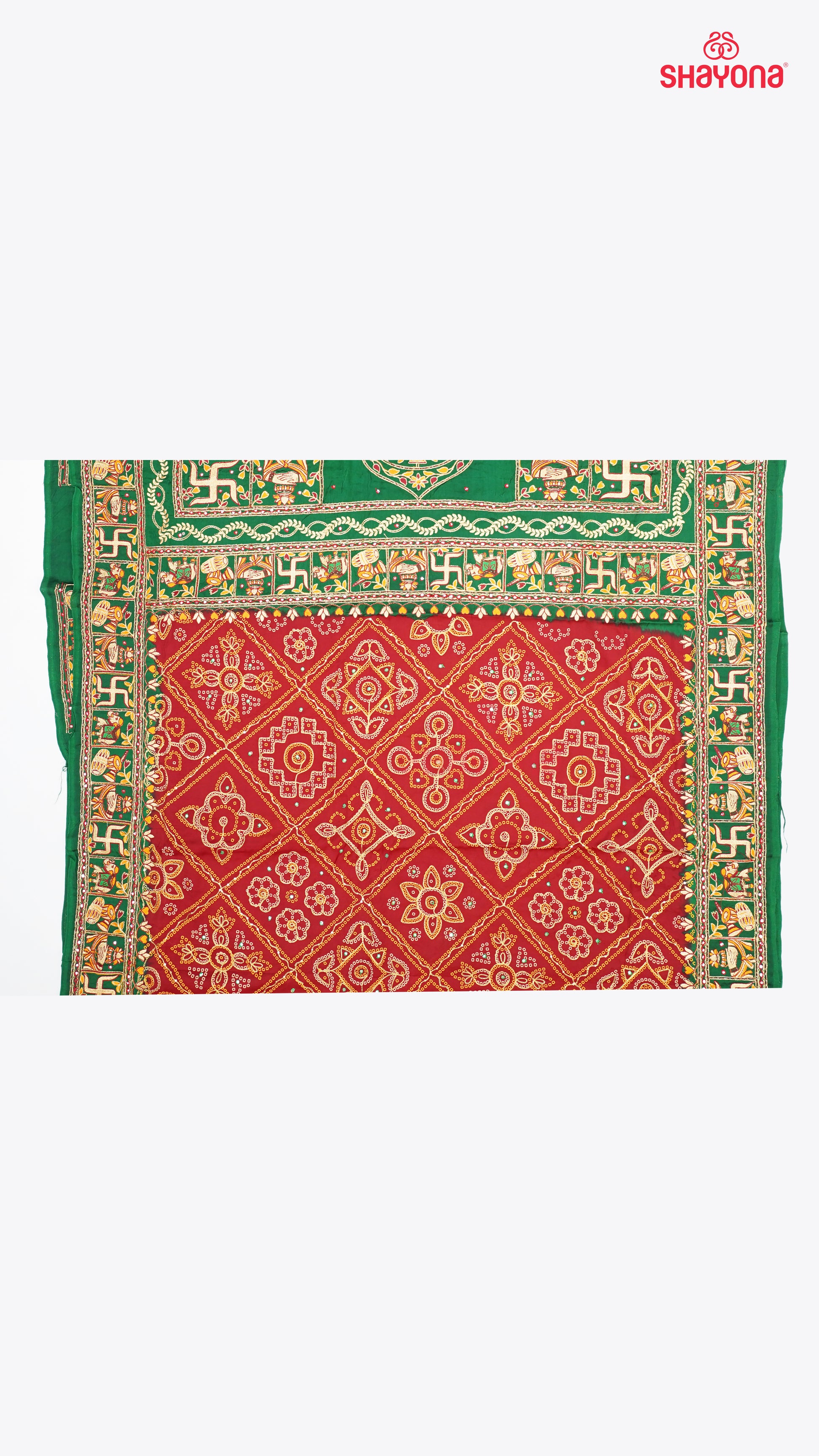 #GharcholaSaree#WeddingMotifSaree#AariWorkTradition#BandhaniBridalWear#ShayonaSarees#GajjiSilkElegance#GujaratiHeritageWear#SwastikToJaimala#HandcraftedByTradition#BridalSareeLove