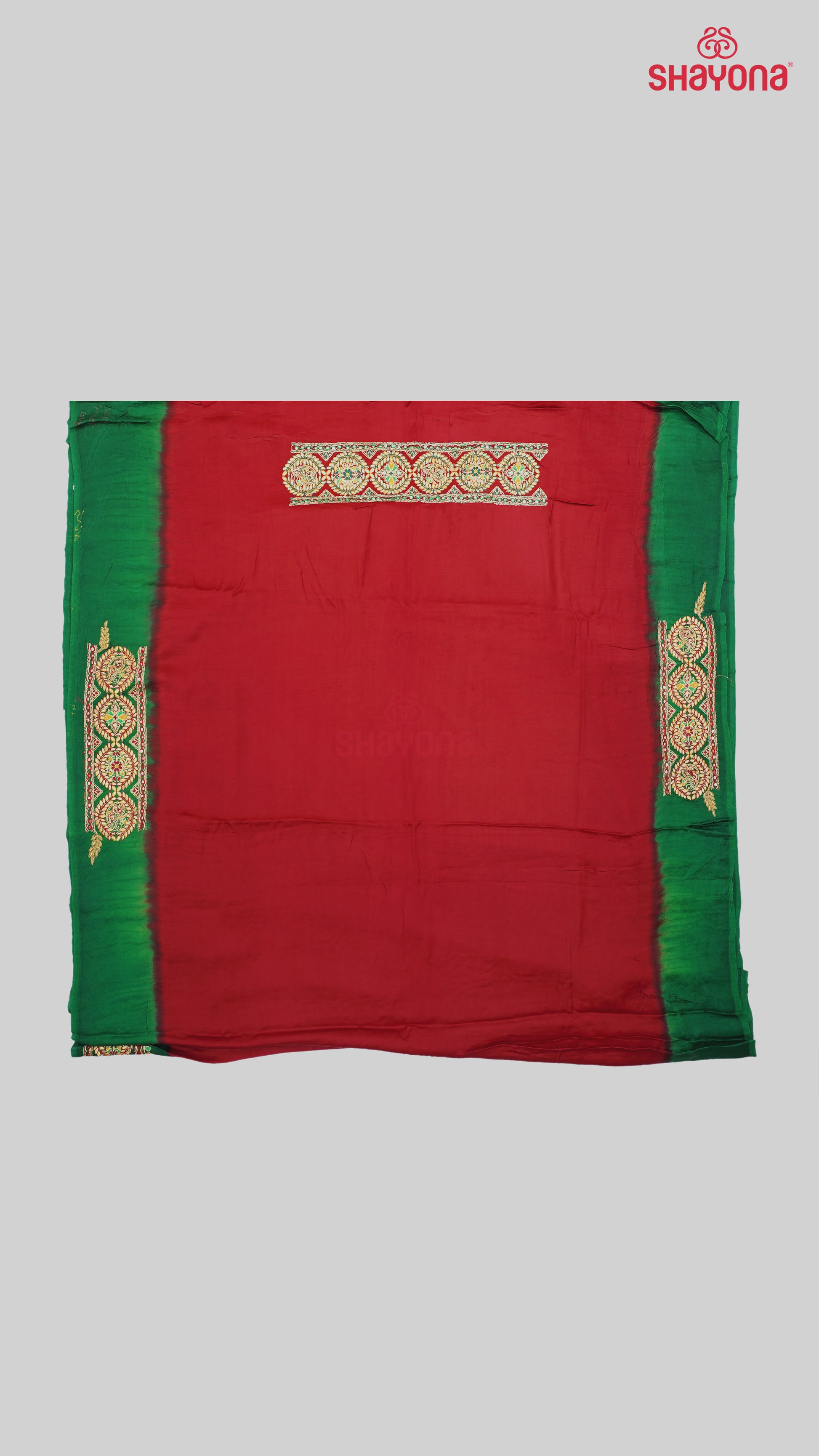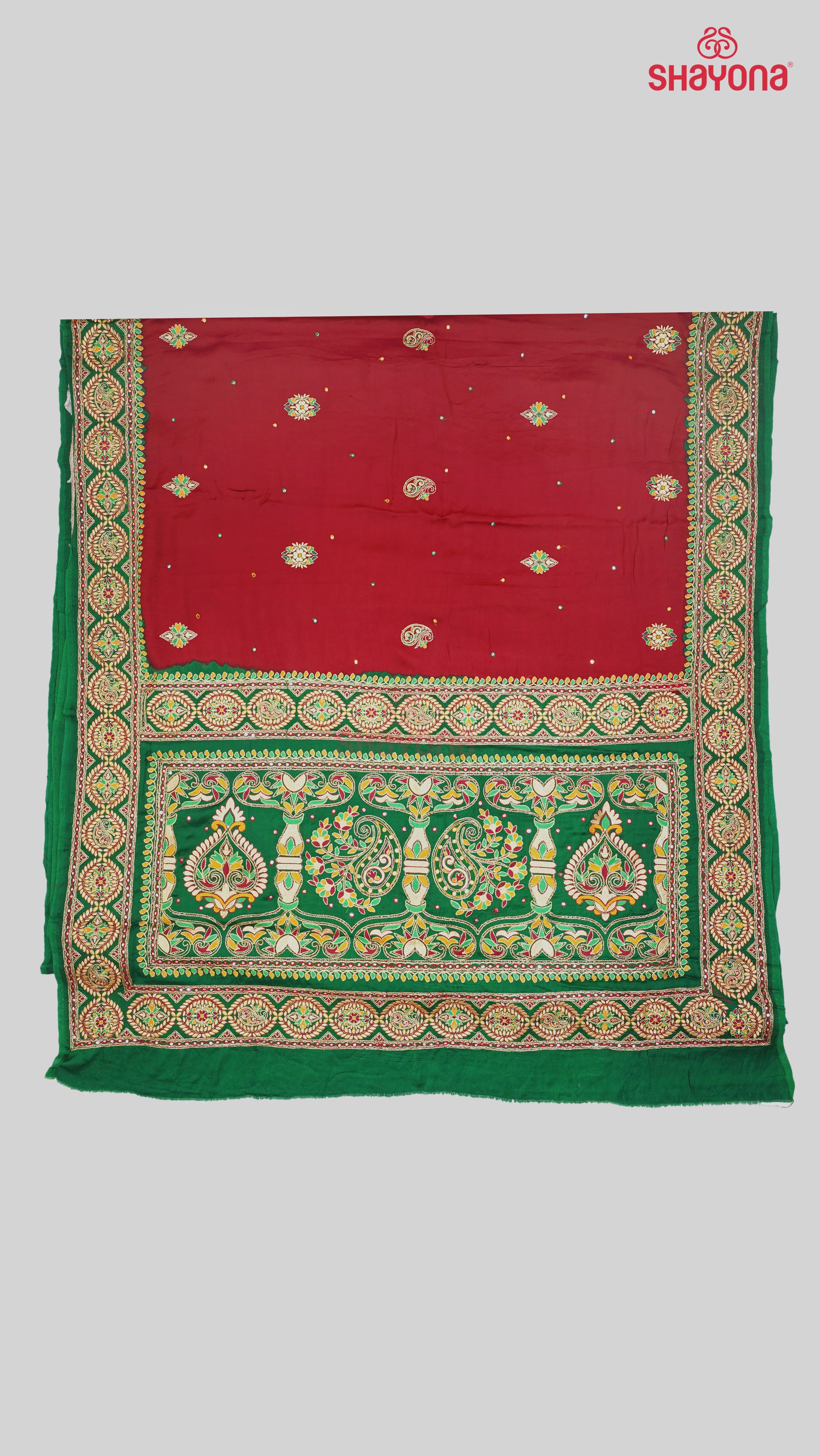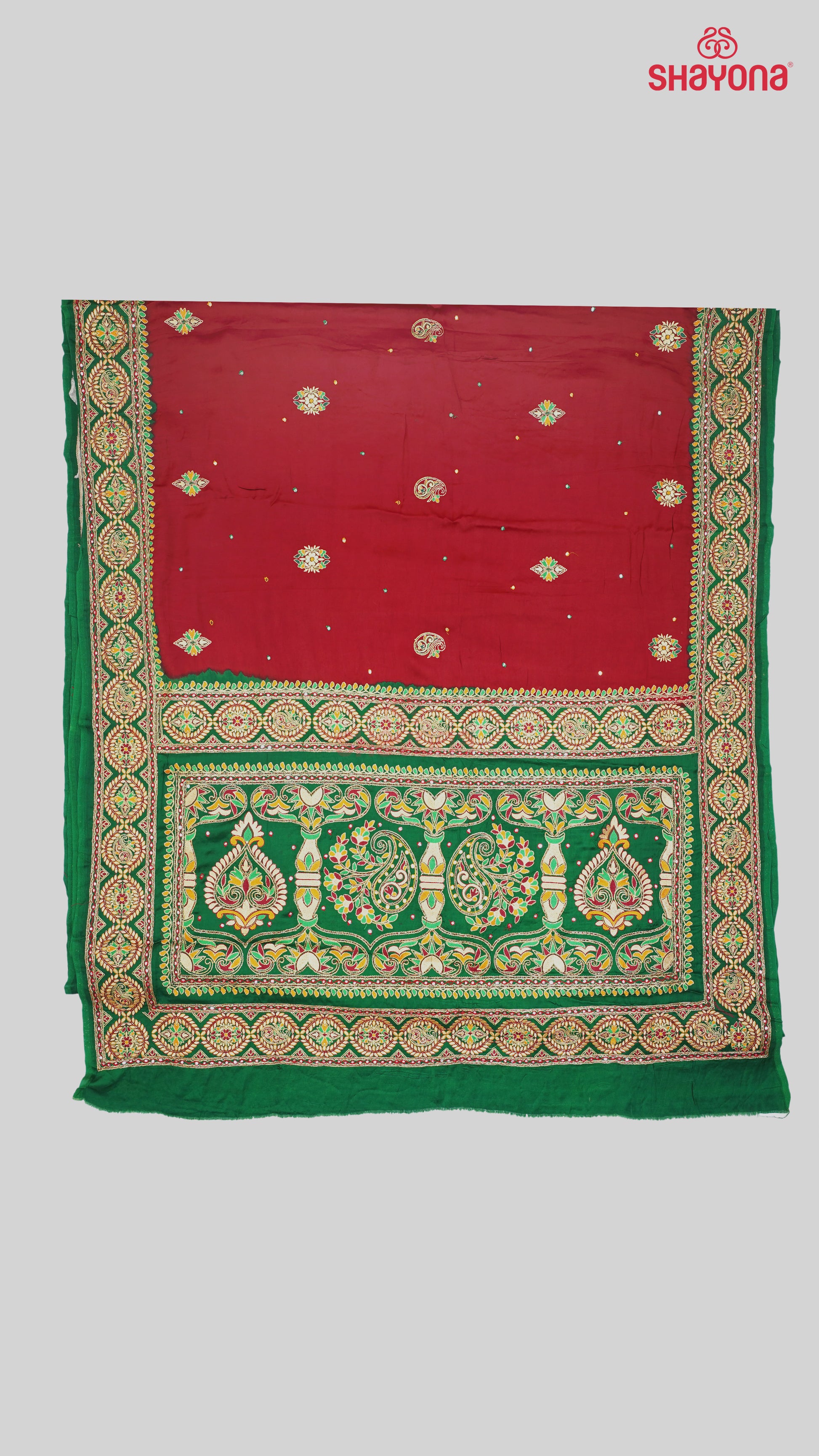 Maroon & Dark Green Pure Gajji Silk Gharchola Saree
