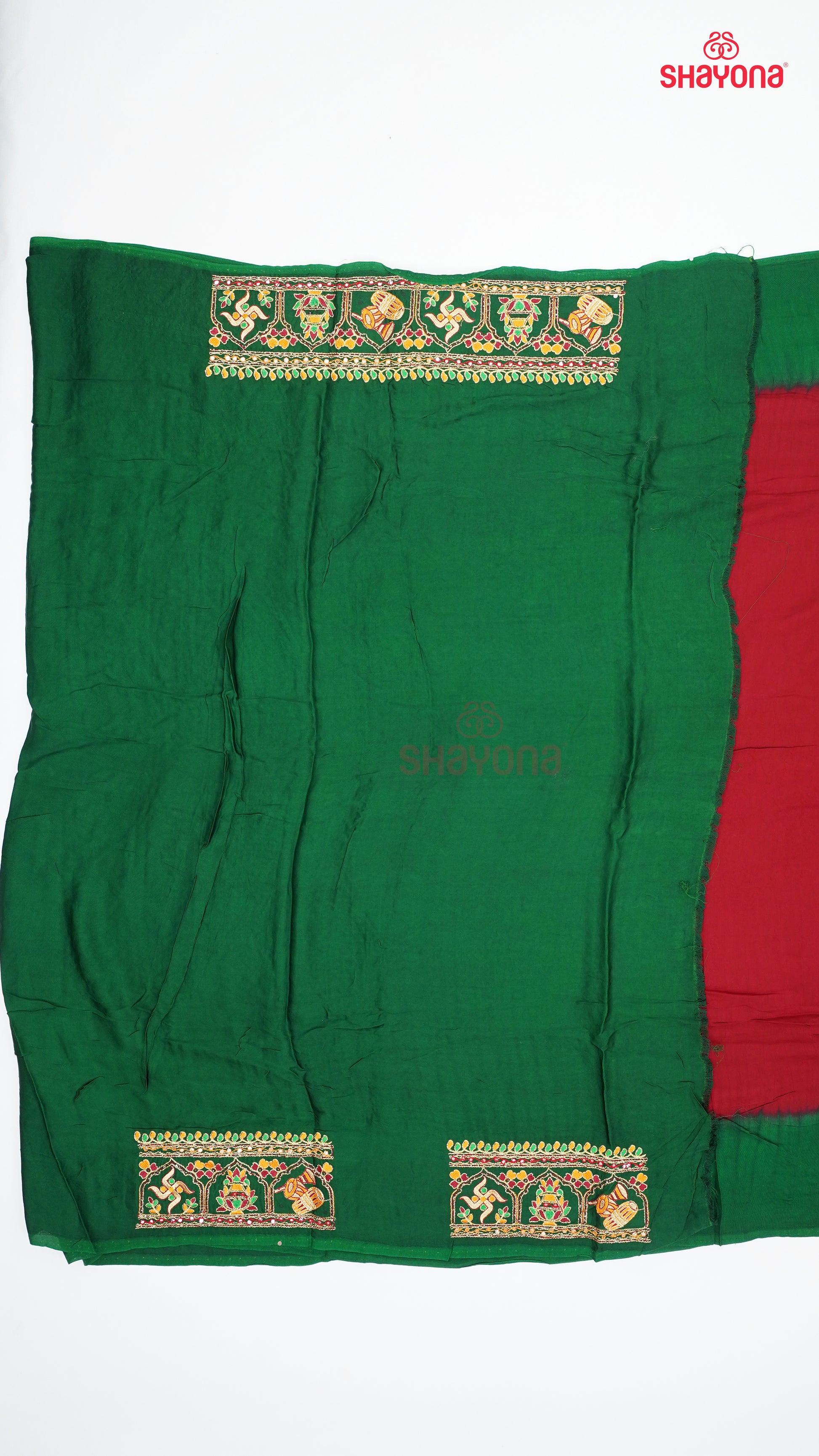 Maroon & Dark Green Pure Gajji Silk Gharchola Saree