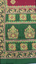 Maroon & Dark Green Pure Gajji Silk Gharchola Saree