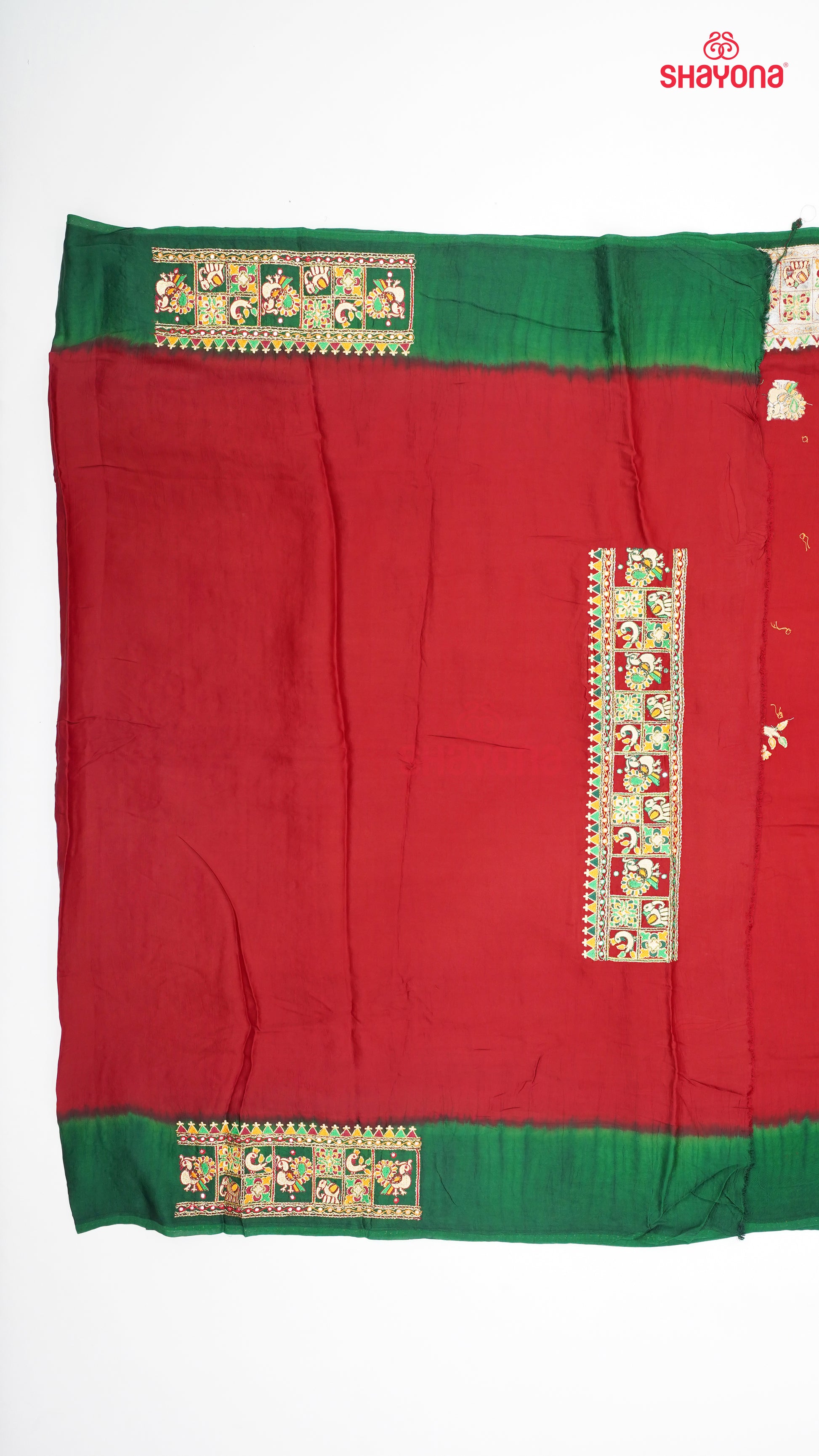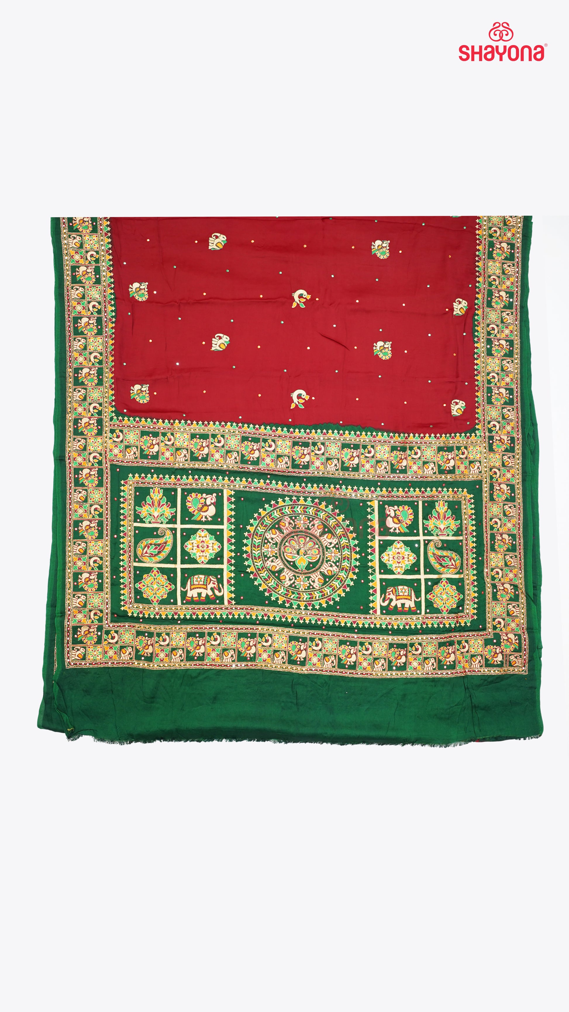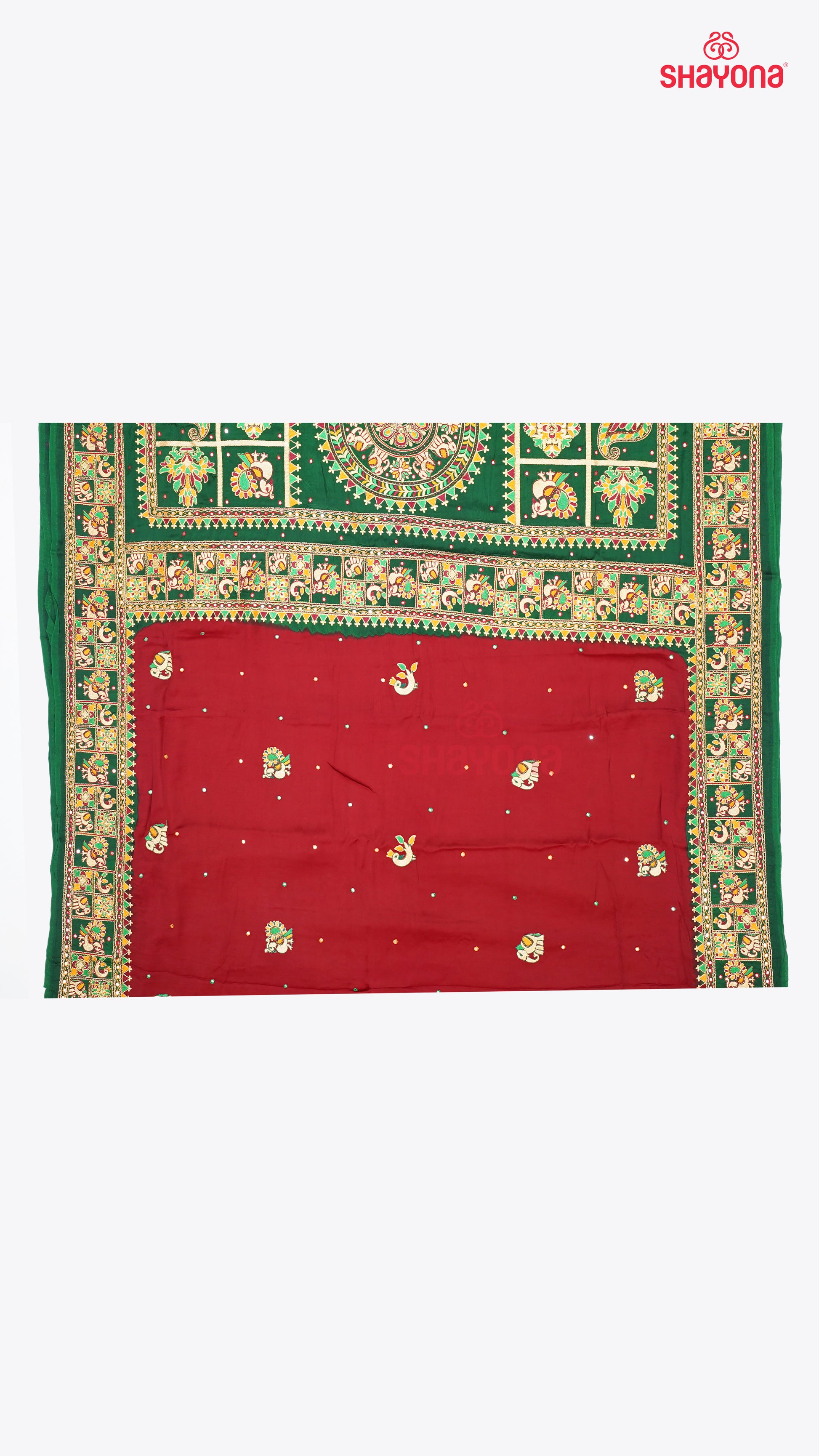 Maroon & Dark Green Pure Gajji Silk Gharchola Saree