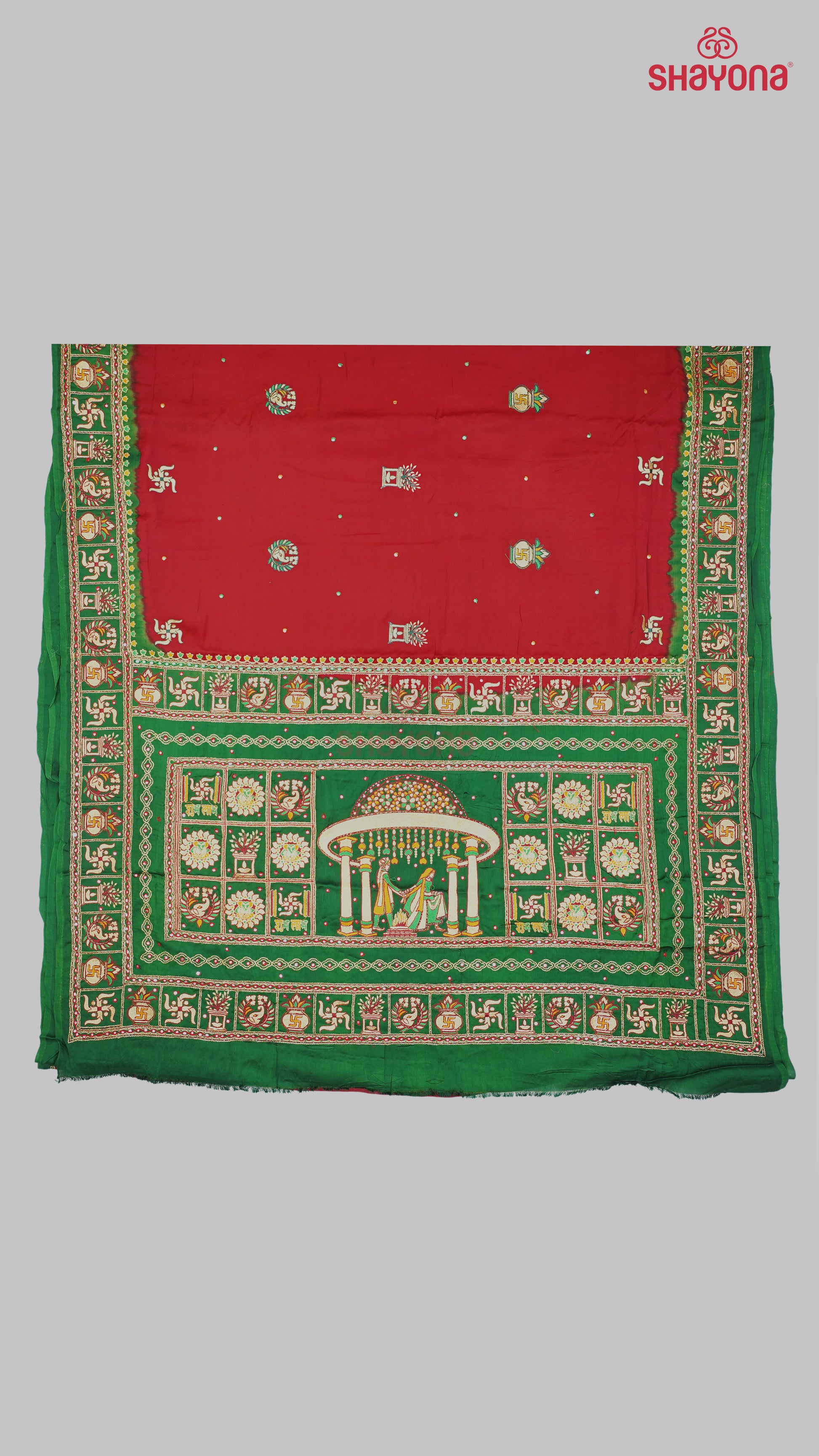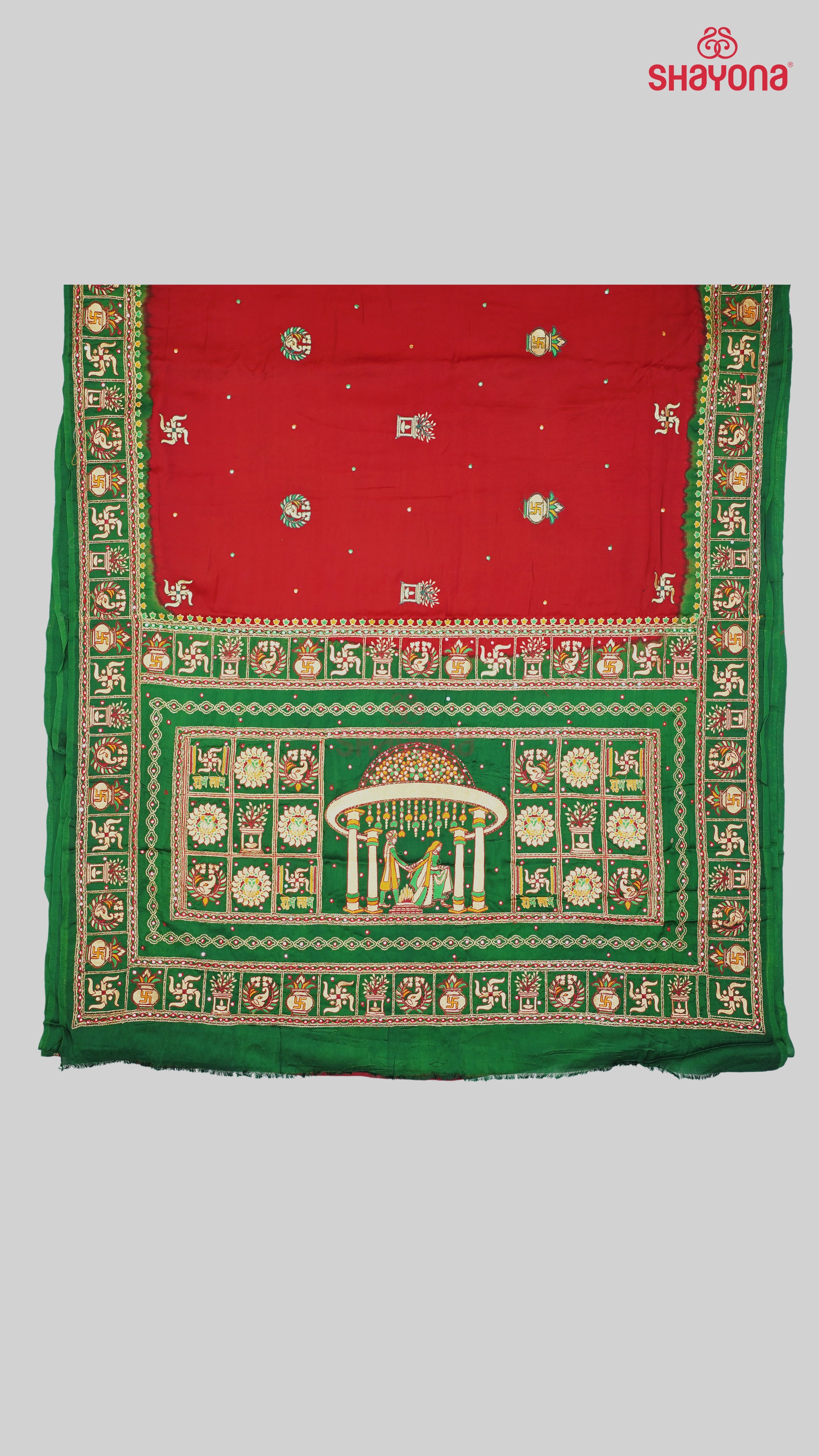 Maroon & Dark Green Pure Gajji Silk Gharchola Saree