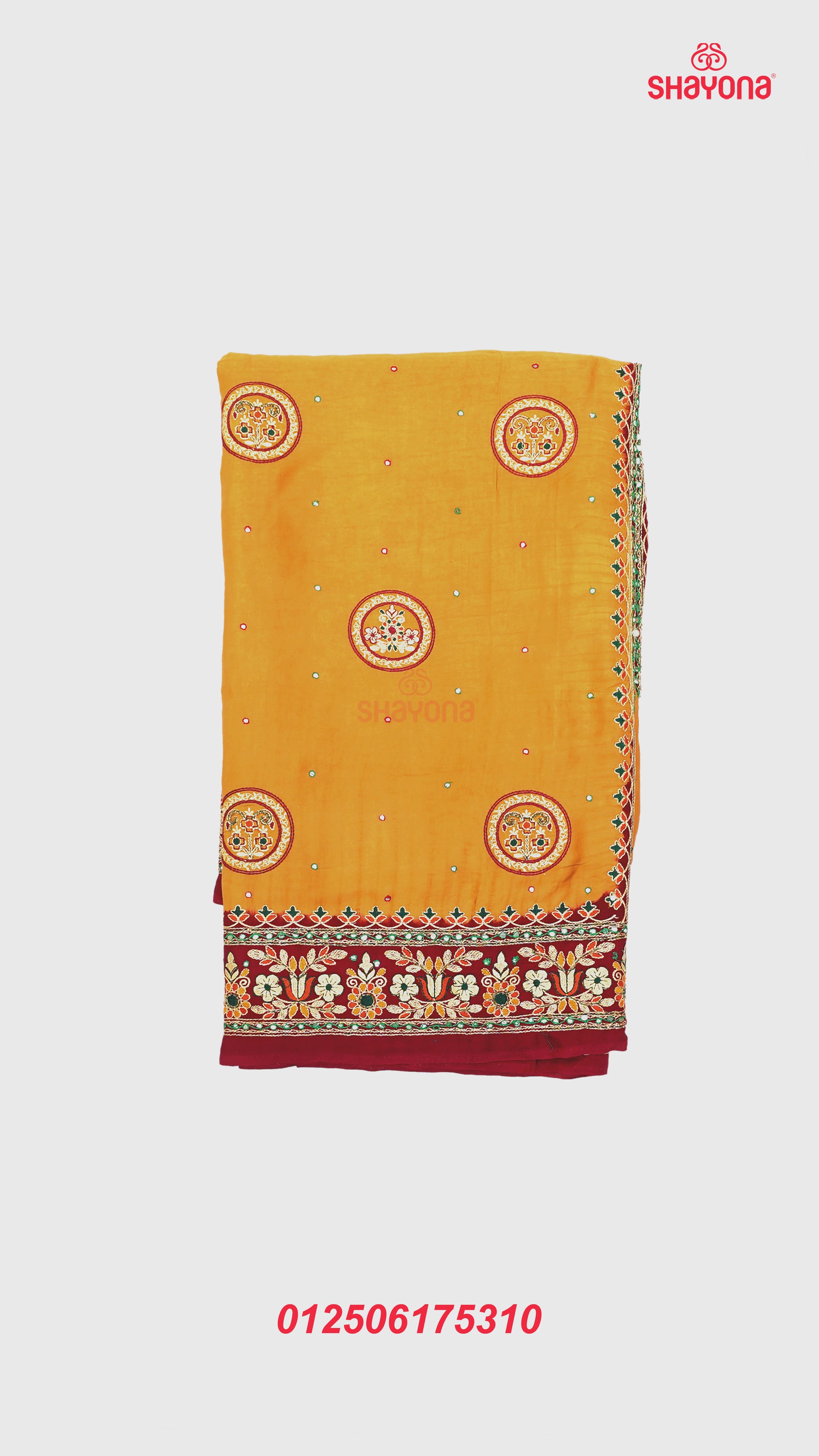 #GajjiSilkGharchola#MustardMaroonSaree#HandworkedSaree#ButtaButtiWork#NakshiBorderElegance#ShayonaHeritage#WeddingSilkSaree#BandhaniLove#GharcholaTradition#BridalSilkSaree